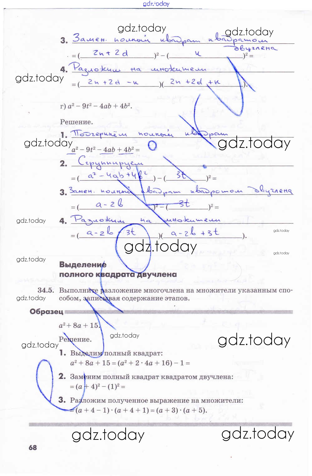 Ответы к Решение к части 2. Страницы 68 Рабочей тетради по Алгебре для 7 класса Зубарева, Мильштейн Мнемозина 2019