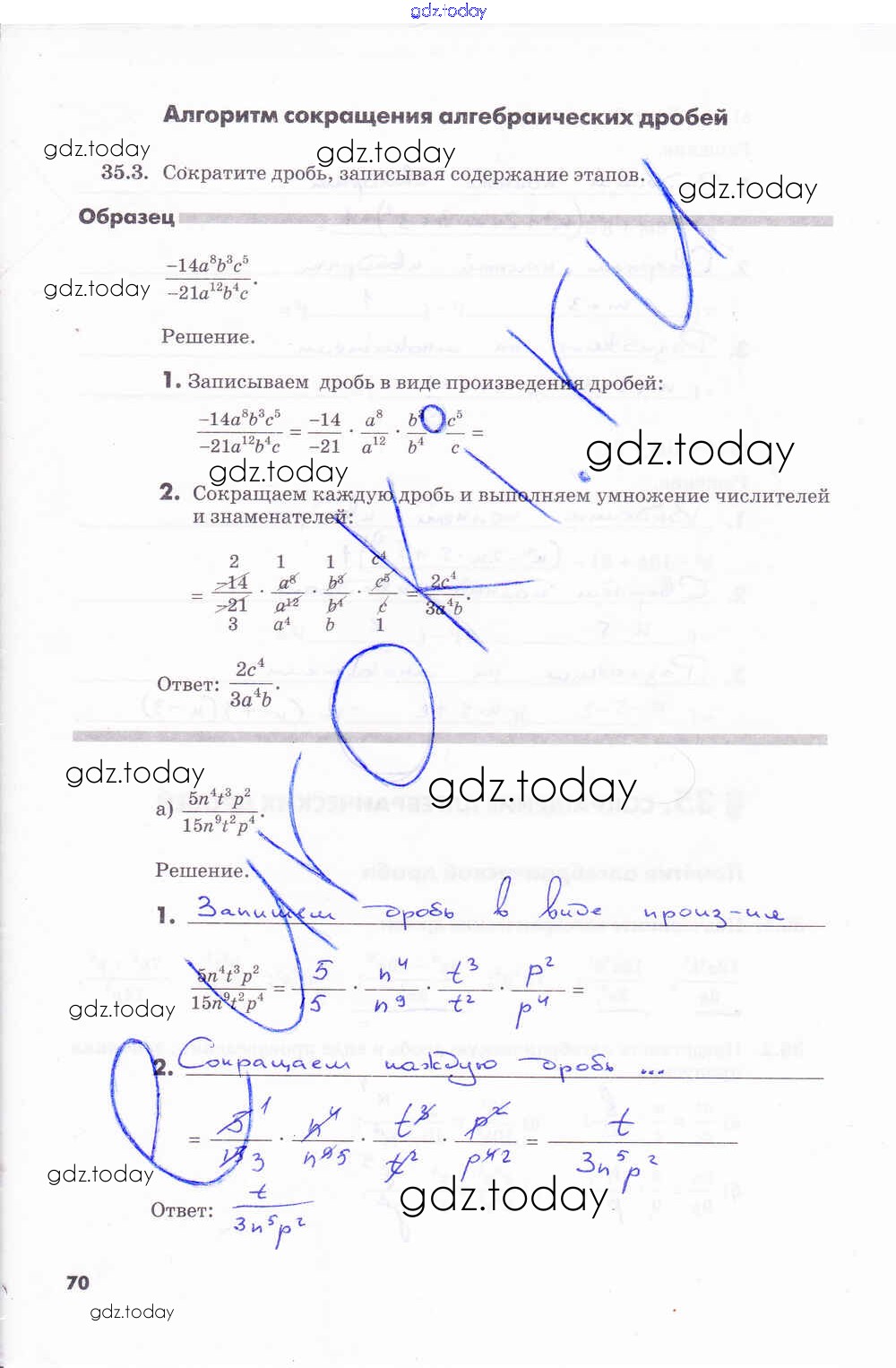 На страницах сайта gdz.today вы найдете учебный и вспомогательный материал, направленный на улучшения знаний школьной программы. ГДЗ - онлайн мир знаний Решение к части 2. Страницы 70 Рабочей тетради по Алгебре для 7 класса Зубарева, Мильштейн Мнемозина 2019
