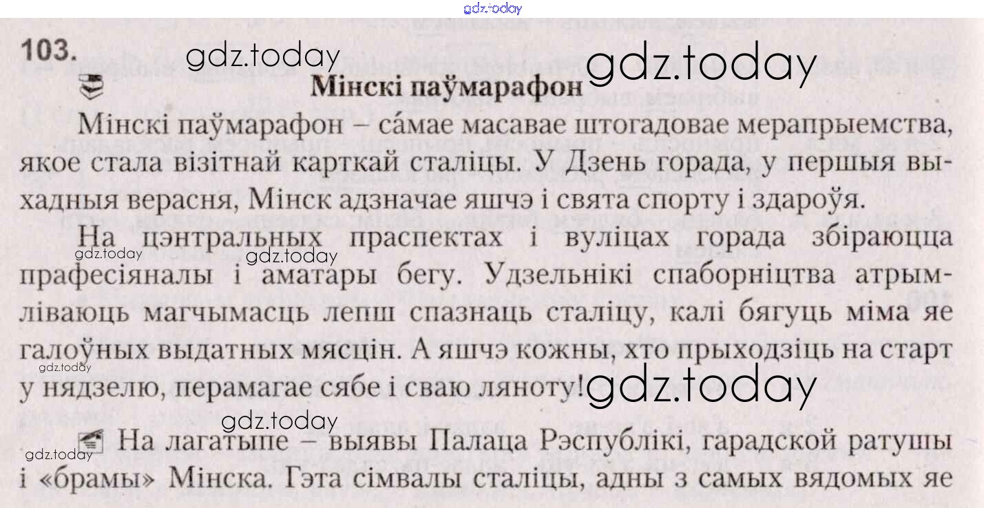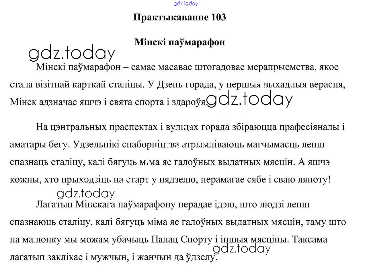 На страницах сайта gdz.today вы найдете учебный и вспомогательный материал, направленный на улучшения знаний школьной программы. ГДЗ - онлайн мир знаний Практыкаванні 103 Учебнику по Белорусскому языку для 7 класса Валочка, Язерская Национальный институт образования 2020