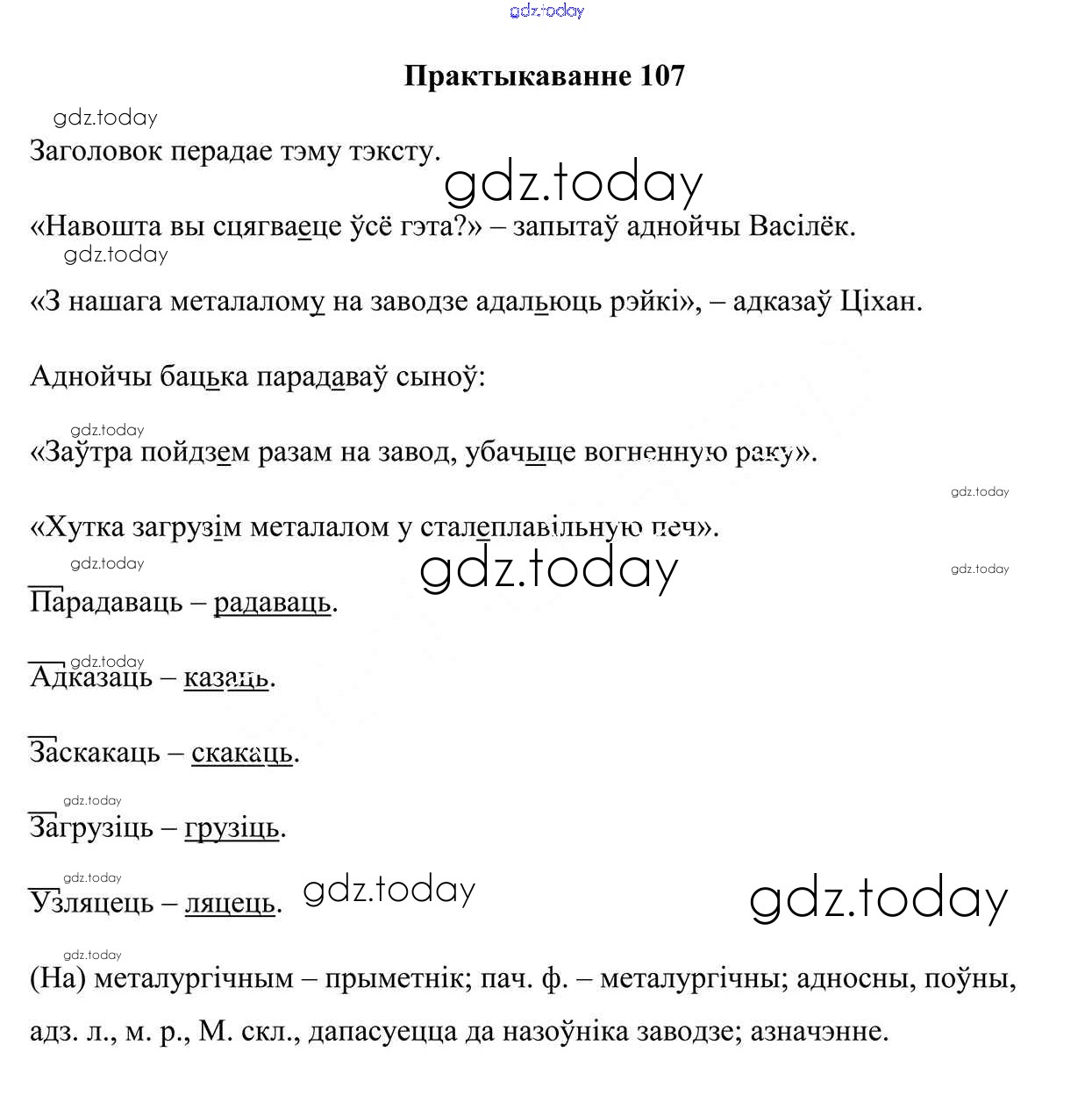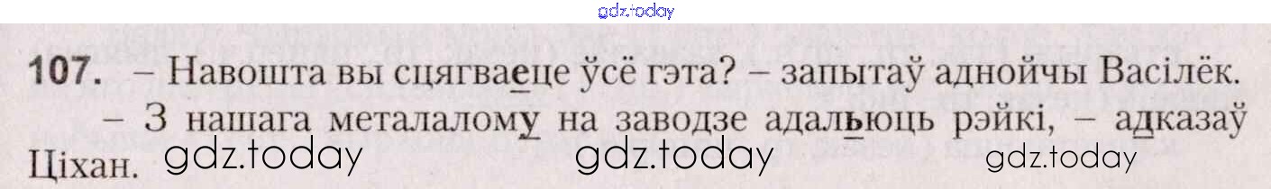 На страницах сайта gdz.today вы найдете учебный и вспомогательный материал, направленный на улучшения знаний школьной программы. ГДЗ - онлайн мир знаний Практыкаванні 107 Учебнику по Белорусскому языку для 7 класса Валочка, Язерская Национальный институт образования 2020