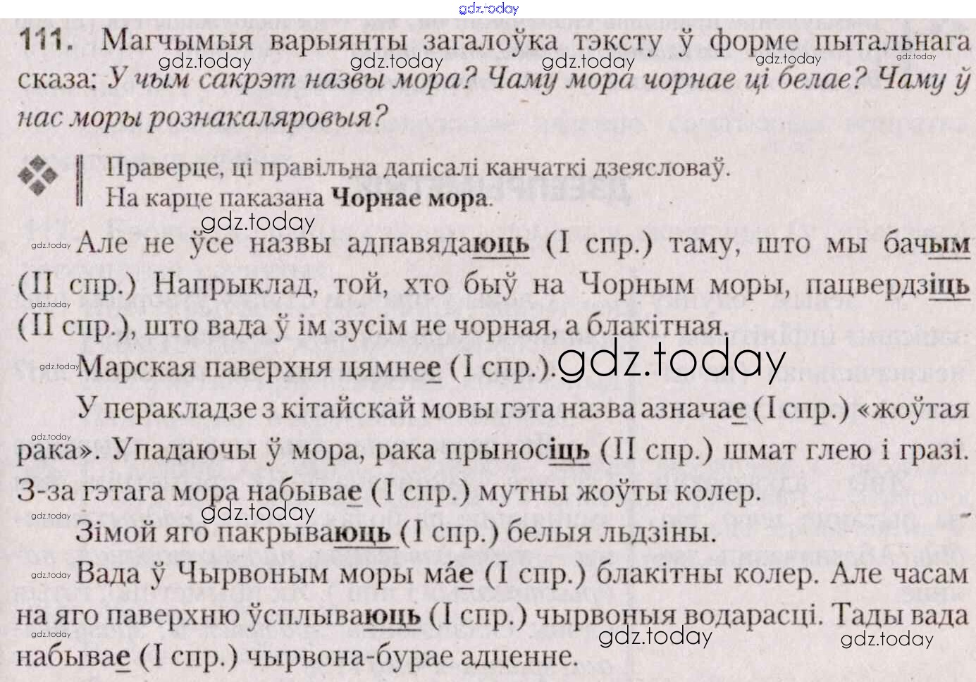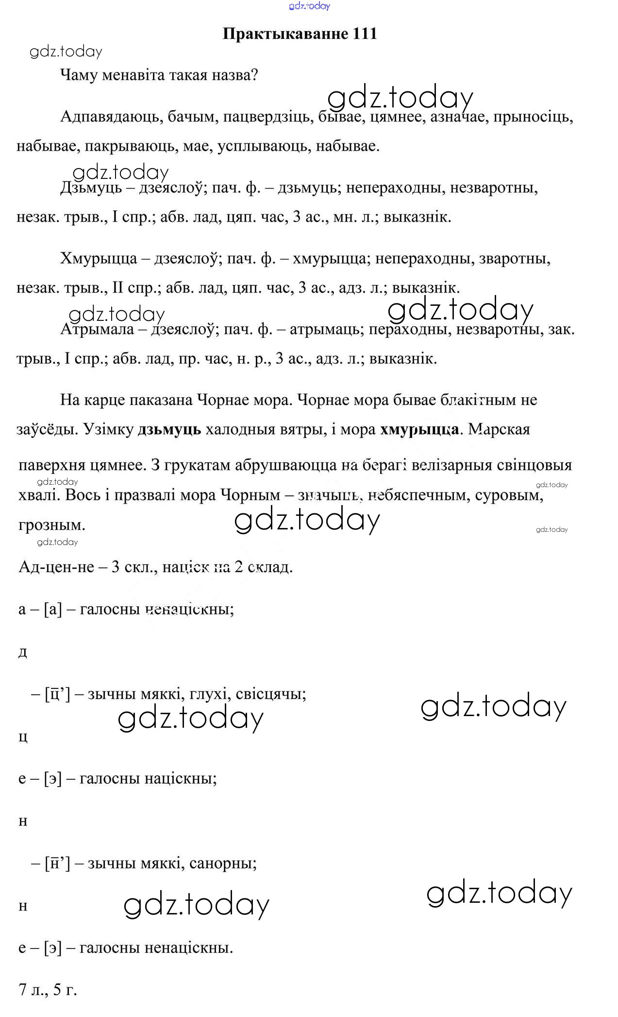 На страницах сайта gdz.today вы найдете учебный и вспомогательный материал, направленный на улучшения знаний школьной программы. ГДЗ - онлайн мир знаний Практыкаванні 111 Учебнику по Белорусскому языку для 7 класса Валочка, Язерская Национальный институт образования 2020