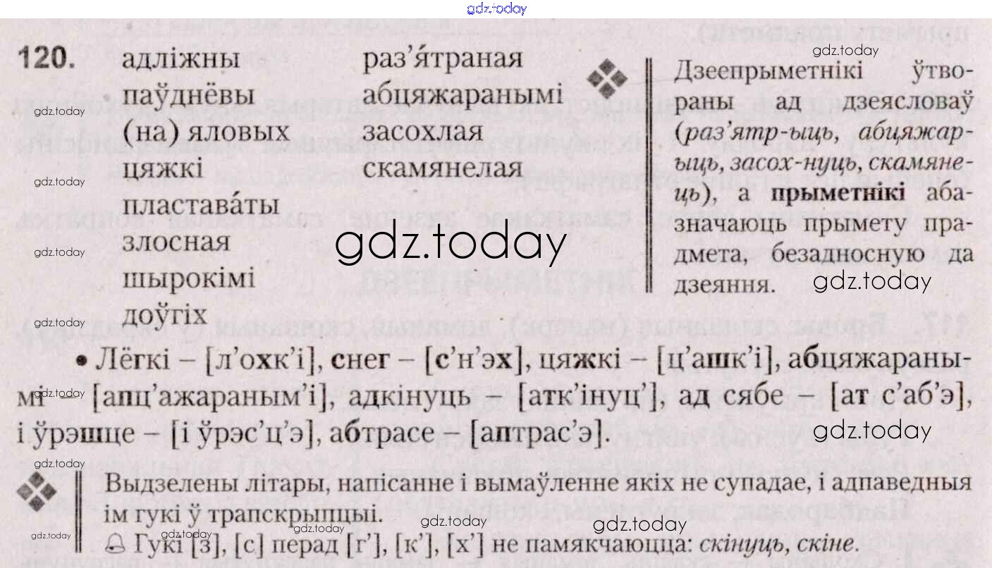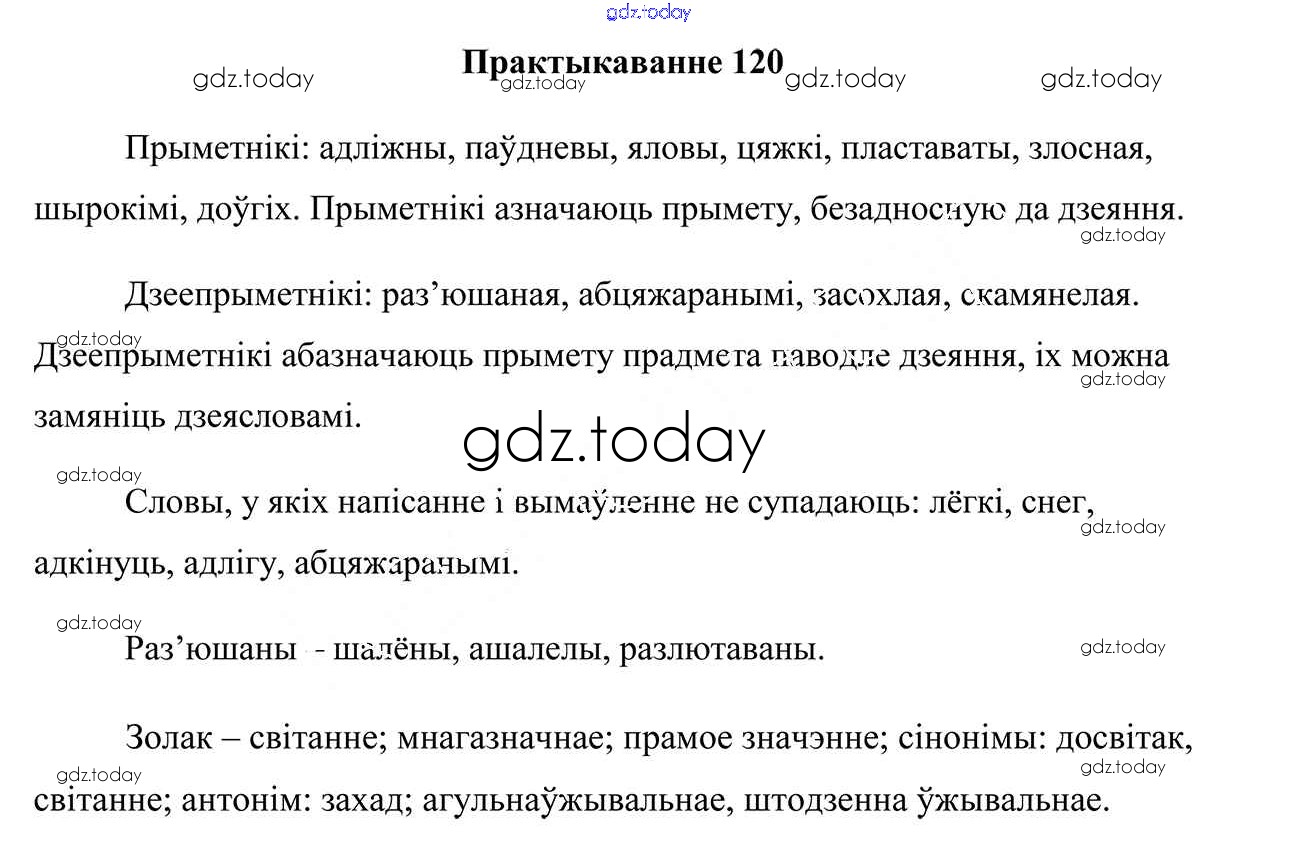 На страницах сайта gdz.today вы найдете учебный и вспомогательный материал, направленный на улучшения знаний школьной программы. ГДЗ - онлайн мир знаний Практыкаванні 120 Учебнику по Белорусскому языку для 7 класса Валочка, Язерская Национальный институт образования 2020