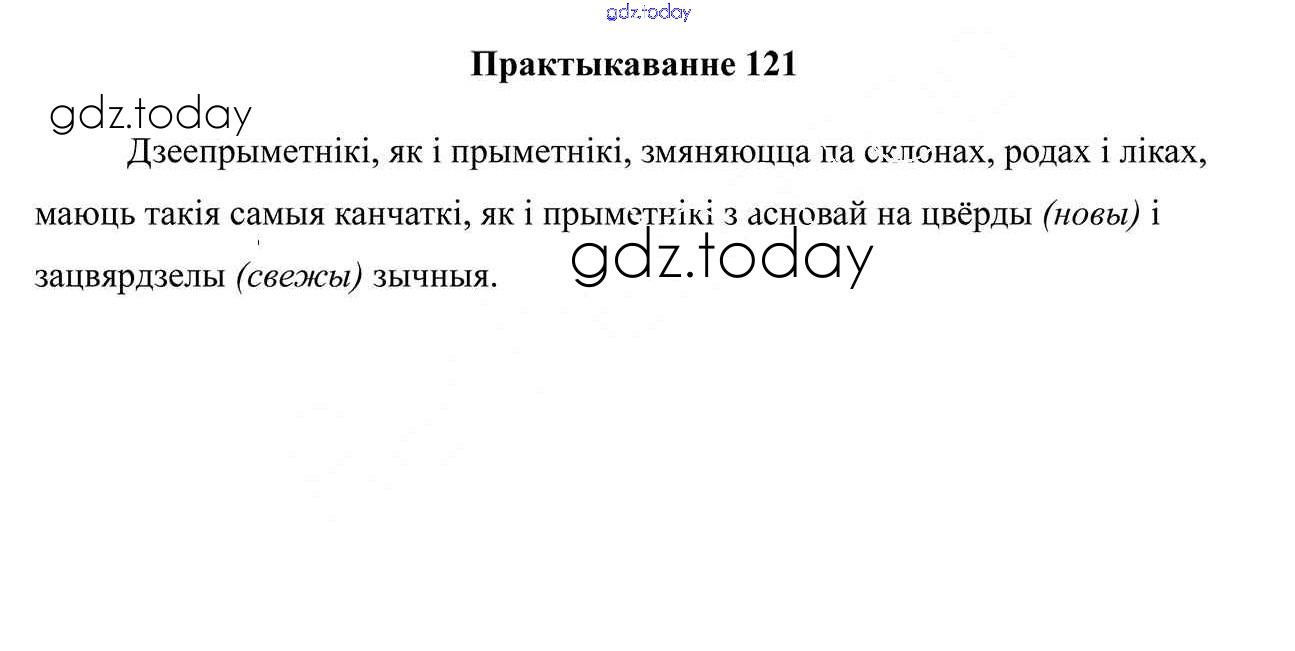 На страницах сайта gdz.today вы найдете учебный и вспомогательный материал, направленный на улучшения знаний школьной программы. ГДЗ - онлайн мир знаний Практыкаванні 121 Учебнику по Белорусскому языку для 7 класса Валочка, Язерская Национальный институт образования 2020