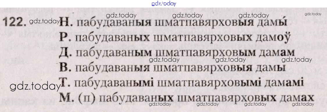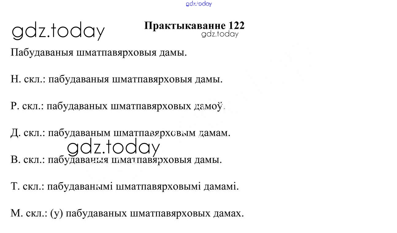 На страницах сайта gdz.today вы найдете учебный и вспомогательный материал, направленный на улучшения знаний школьной программы. ГДЗ - онлайн мир знаний Практыкаванні 122 Учебнику по Белорусскому языку для 7 класса Валочка, Язерская Национальный институт образования 2020