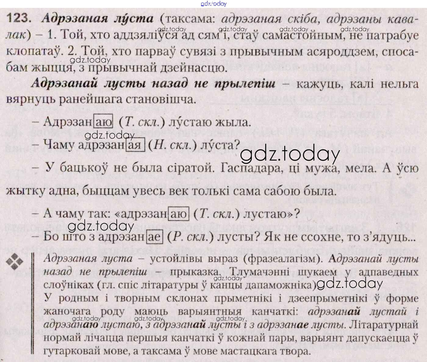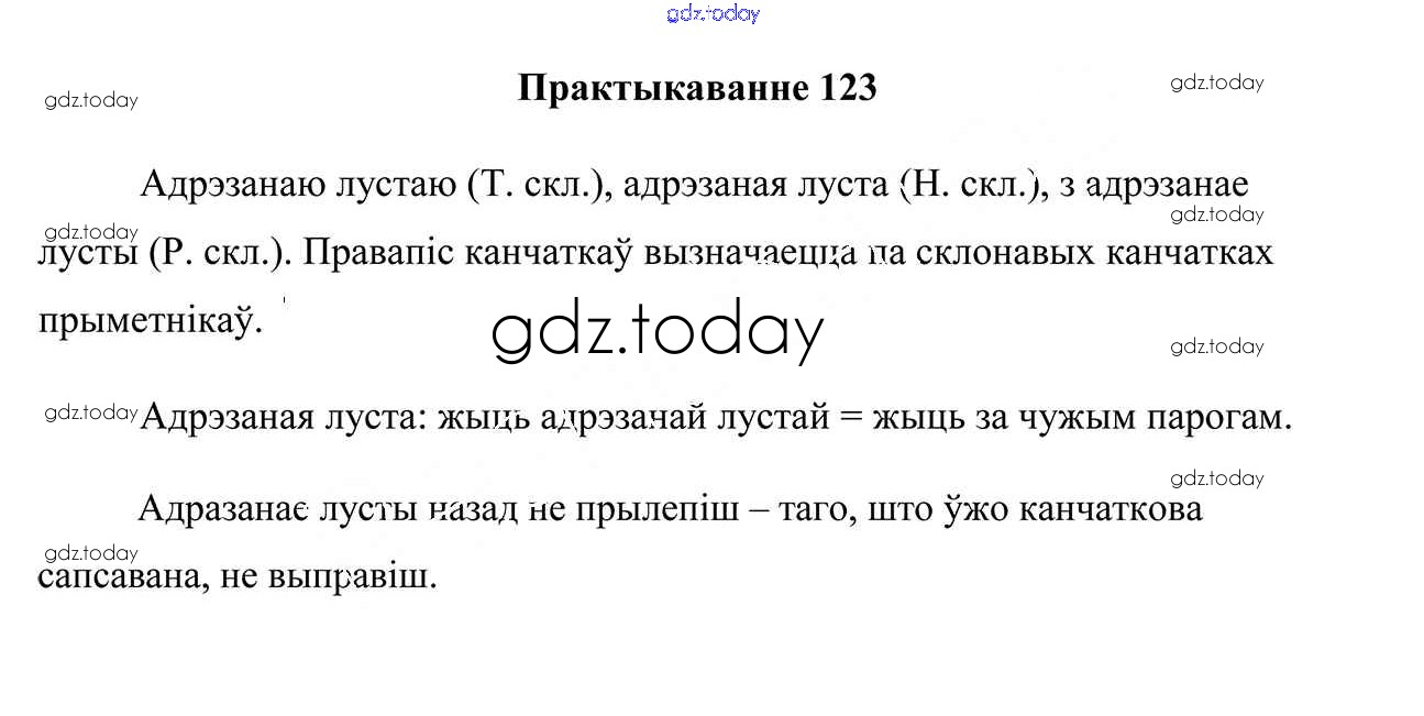 На страницах сайта gdz.today вы найдете учебный и вспомогательный материал, направленный на улучшения знаний школьной программы. ГДЗ - онлайн мир знаний Практыкаванні 123 Учебнику по Белорусскому языку для 7 класса Валочка, Язерская Национальный институт образования 2020