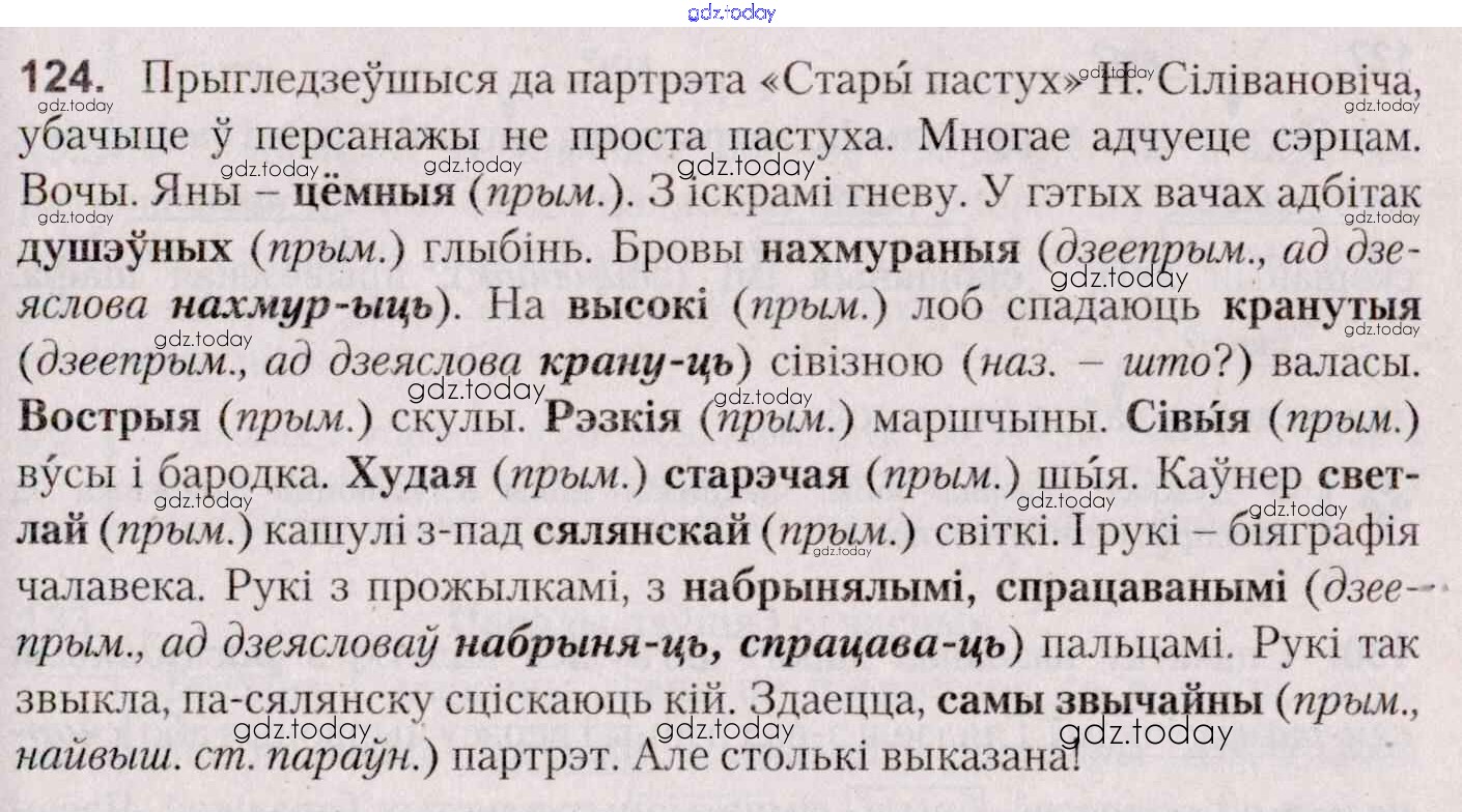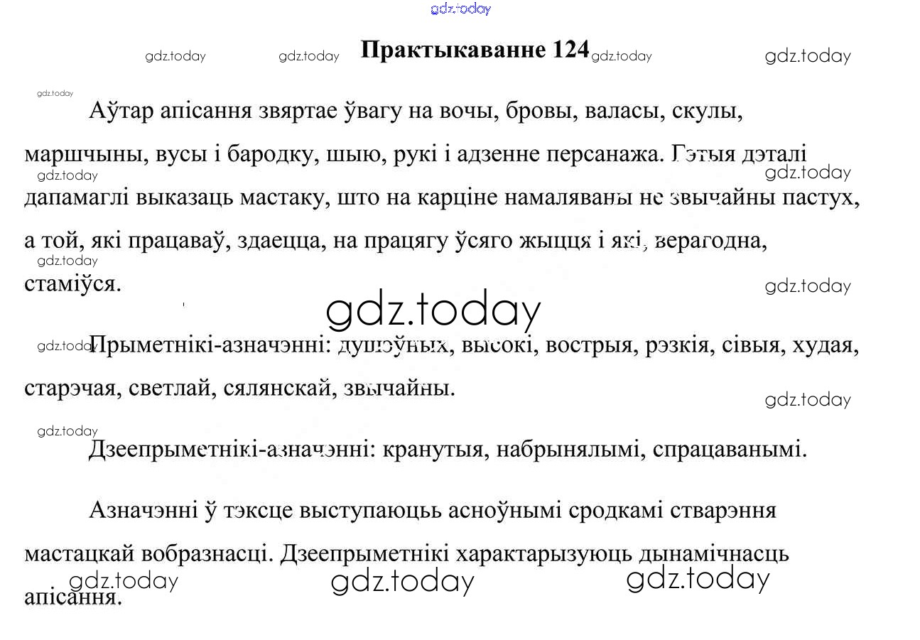 На страницах сайта gdz.today вы найдете учебный и вспомогательный материал, направленный на улучшения знаний школьной программы. ГДЗ - онлайн мир знаний Практыкаванні 124 Учебнику по Белорусскому языку для 7 класса Валочка, Язерская Национальный институт образования 2020