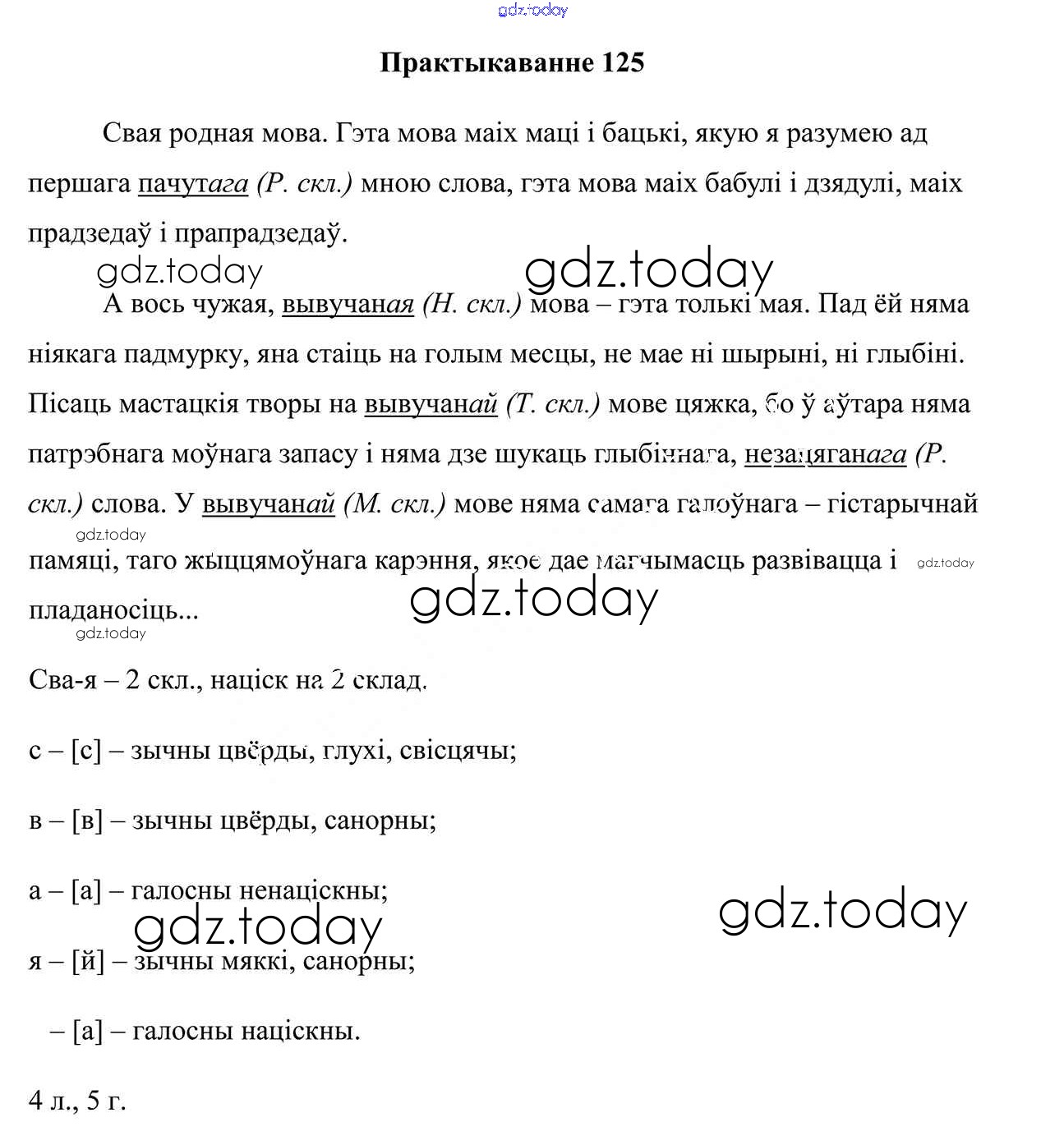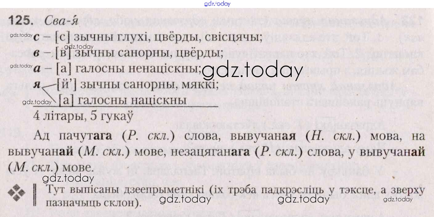 На страницах сайта gdz.today вы найдете учебный и вспомогательный материал, направленный на улучшения знаний школьной программы. ГДЗ - онлайн мир знаний Практыкаванні 125 Учебнику по Белорусскому языку для 7 класса Валочка, Язерская Национальный институт образования 2020