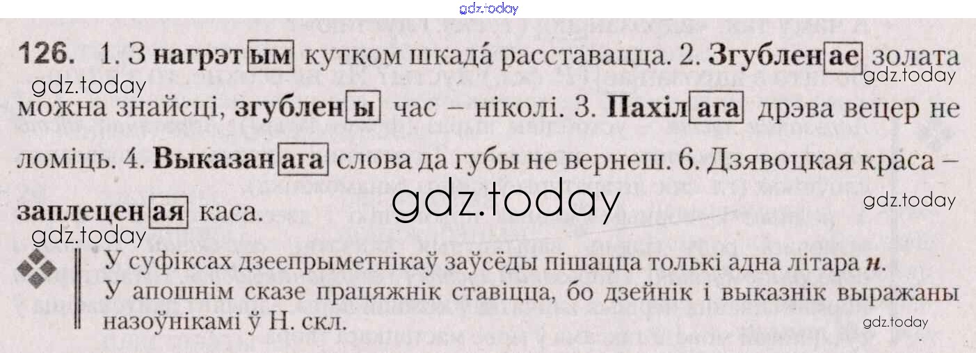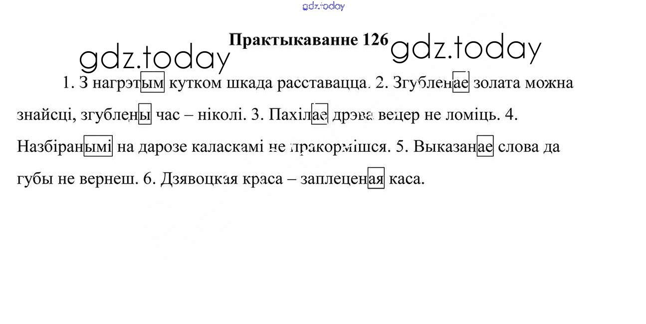 На страницах сайта gdz.today вы найдете учебный и вспомогательный материал, направленный на улучшения знаний школьной программы. ГДЗ - онлайн мир знаний Практыкаванні 126 Учебнику по Белорусскому языку для 7 класса Валочка, Язерская Национальный институт образования 2020