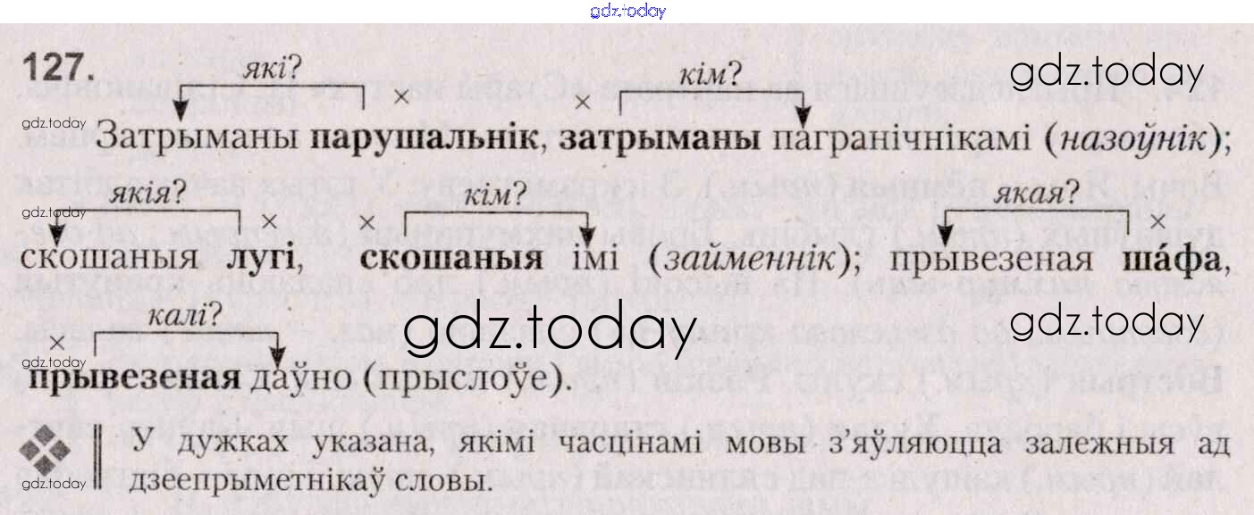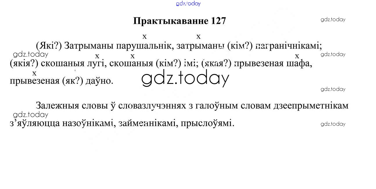 На страницах сайта gdz.today вы найдете учебный и вспомогательный материал, направленный на улучшения знаний школьной программы. ГДЗ - онлайн мир знаний Практыкаванні 127 Учебнику по Белорусскому языку для 7 класса Валочка, Язерская Национальный институт образования 2020