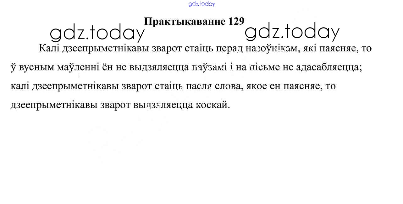 На страницах сайта gdz.today вы найдете учебный и вспомогательный материал, направленный на улучшения знаний школьной программы. ГДЗ - онлайн мир знаний Практыкаванні 129 Учебнику по Белорусскому языку для 7 класса Валочка, Язерская Национальный институт образования 2020