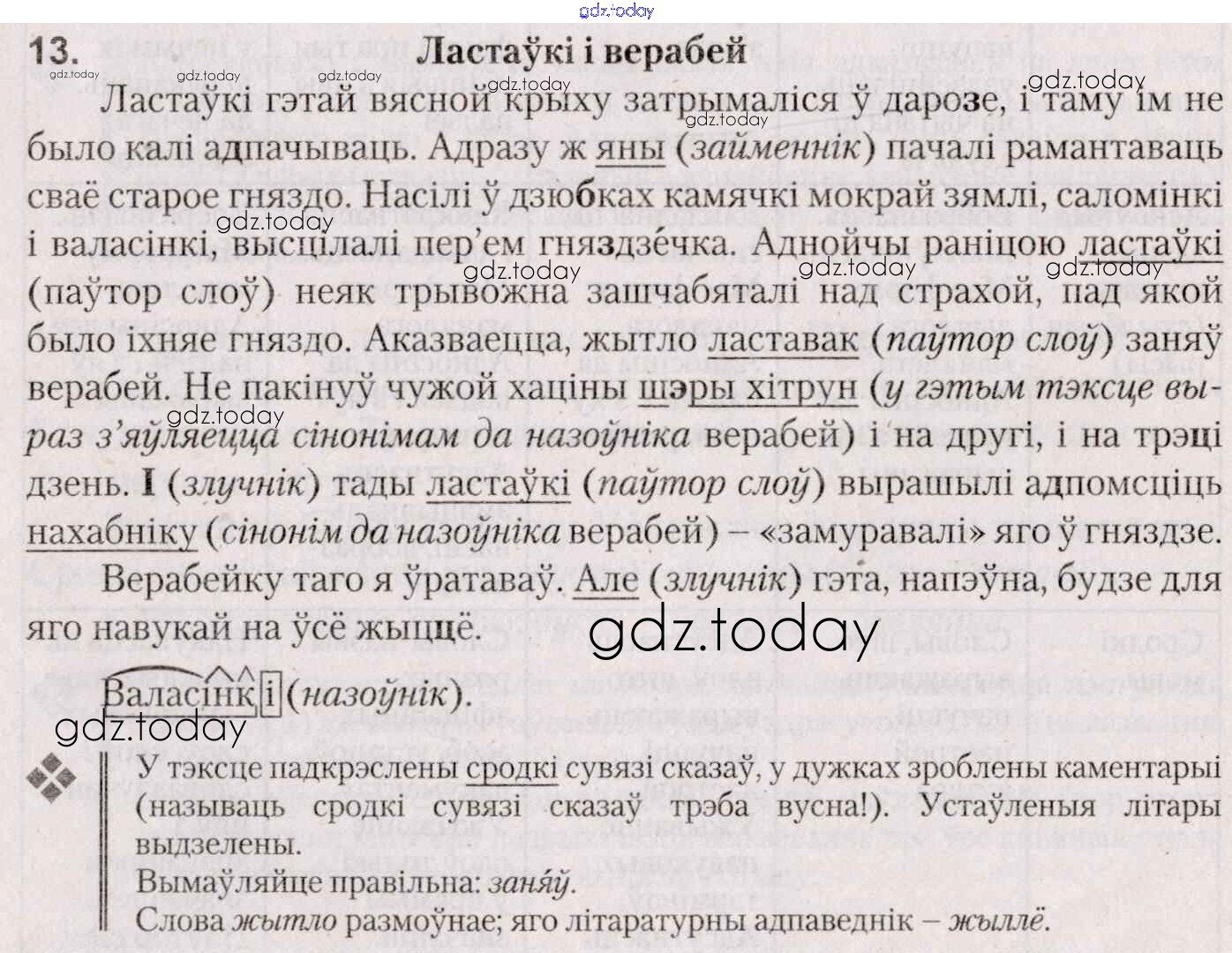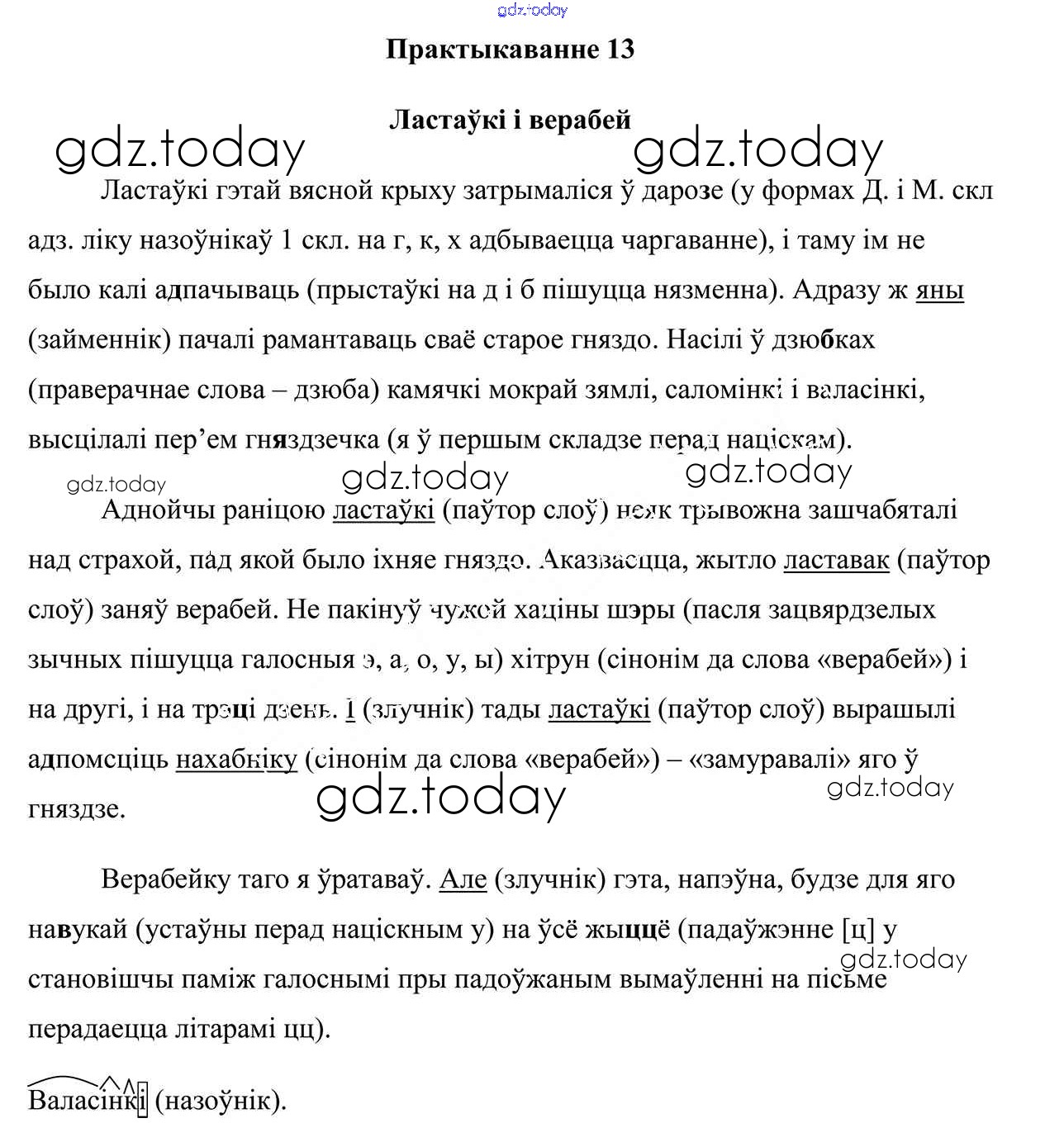 На страницах сайта gdz.today вы найдете учебный и вспомогательный материал, направленный на улучшения знаний школьной программы. ГДЗ - онлайн мир знаний Практыкаванні 13 Учебнику по Белорусскому языку для 7 класса Валочка, Язерская Национальный институт образования 2020