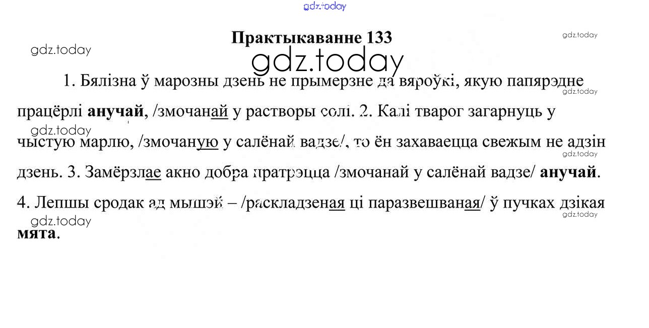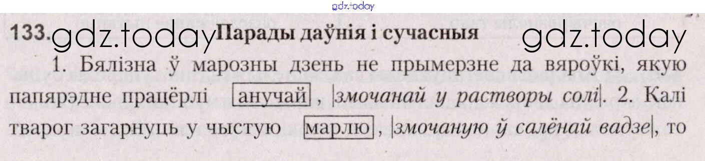 На страницах сайта gdz.today вы найдете учебный и вспомогательный материал, направленный на улучшения знаний школьной программы. ГДЗ - онлайн мир знаний Практыкаванні 133 Учебнику по Белорусскому языку для 7 класса Валочка, Язерская Национальный институт образования 2020
