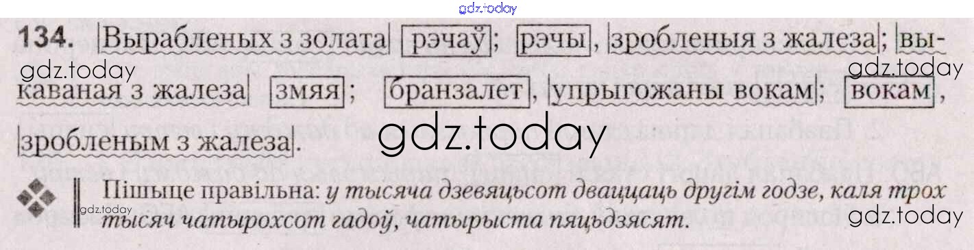 На страницах сайта gdz.today вы найдете учебный и вспомогательный материал, направленный на улучшения знаний школьной программы. ГДЗ - онлайн мир знаний Практыкаванні 134 Учебнику по Белорусскому языку для 7 класса Валочка, Язерская Национальный институт образования 2020