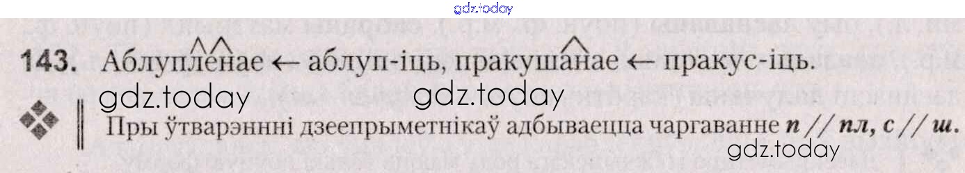 На страницах сайта gdz.today вы найдете учебный и вспомогательный материал, направленный на улучшения знаний школьной программы. ГДЗ - онлайн мир знаний Практыкаванні 143 Учебнику по Белорусскому языку для 7 класса Валочка, Язерская Национальный институт образования 2020
