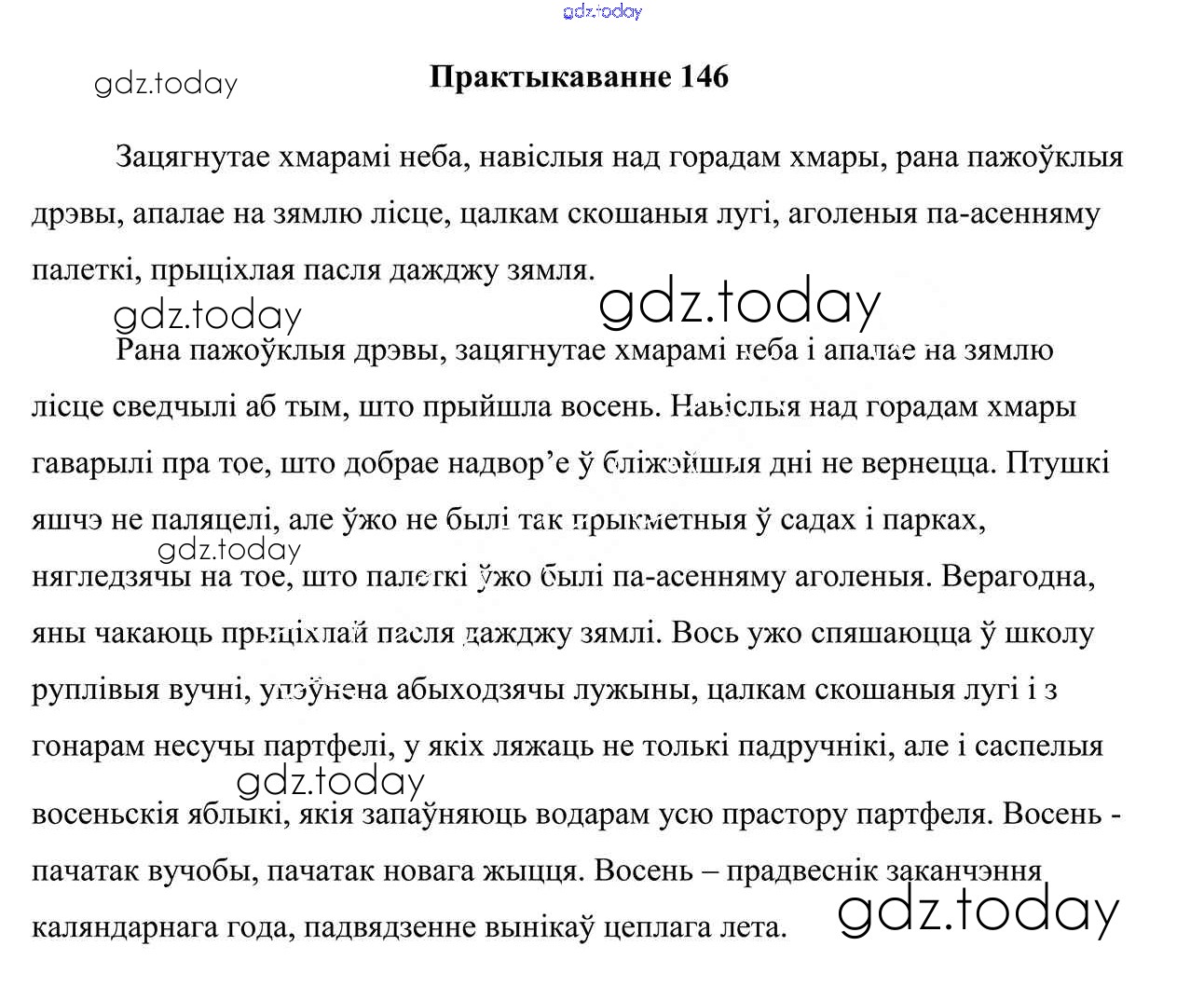 На страницах сайта gdz.today вы найдете учебный и вспомогательный материал, направленный на улучшения знаний школьной программы. ГДЗ - онлайн мир знаний Практыкаванні 146 Учебнику по Белорусскому языку для 7 класса Валочка, Язерская Национальный институт образования 2020