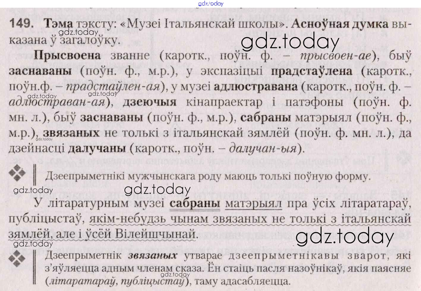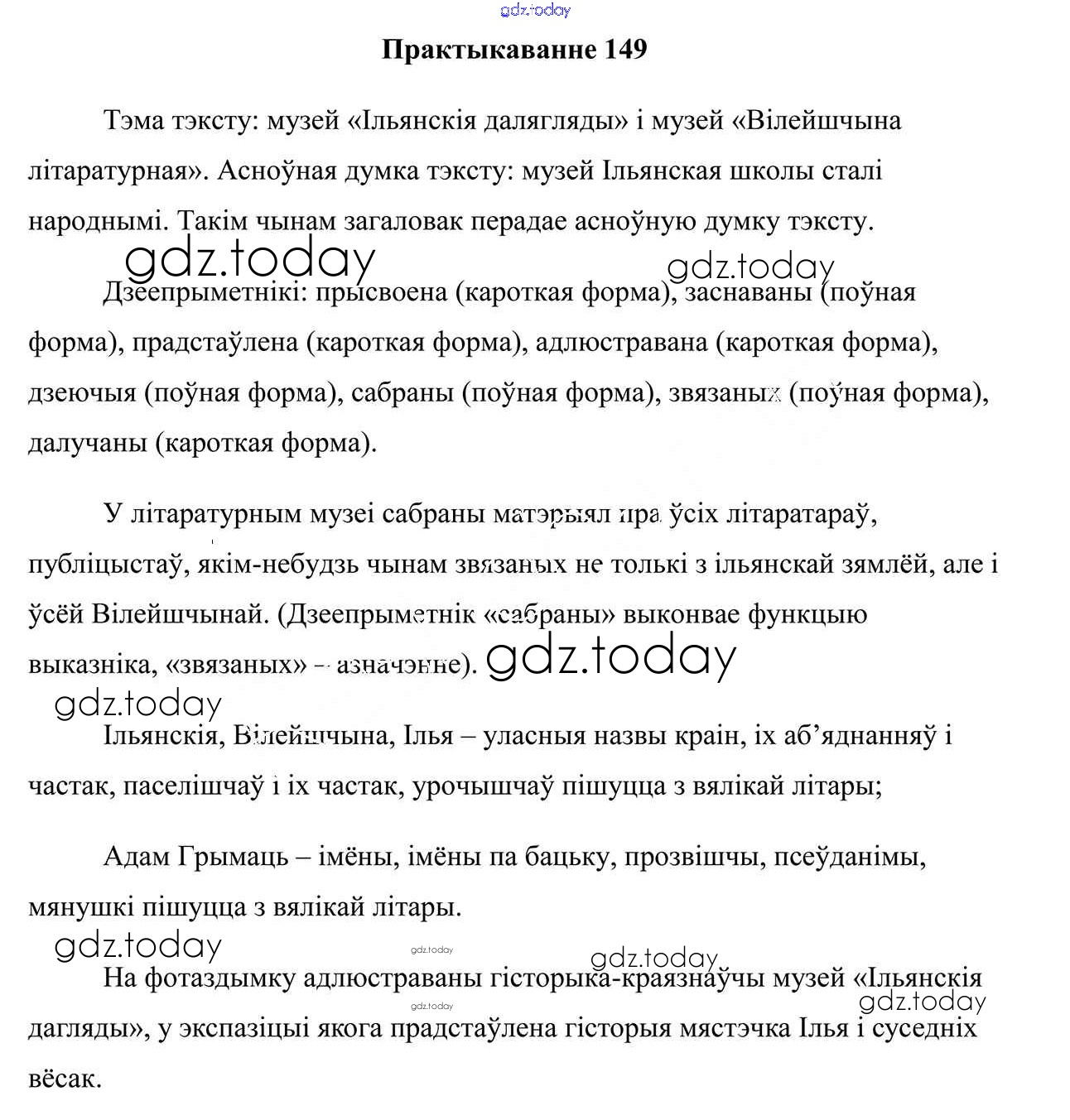 На страницах сайта gdz.today вы найдете учебный и вспомогательный материал, направленный на улучшения знаний школьной программы. ГДЗ - онлайн мир знаний Практыкаванні 149 Учебнику по Белорусскому языку для 7 класса Валочка, Язерская Национальный институт образования 2020