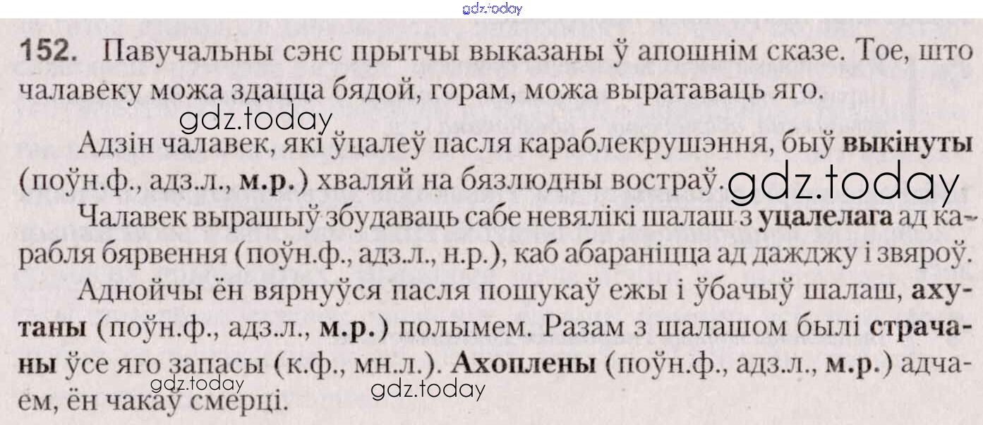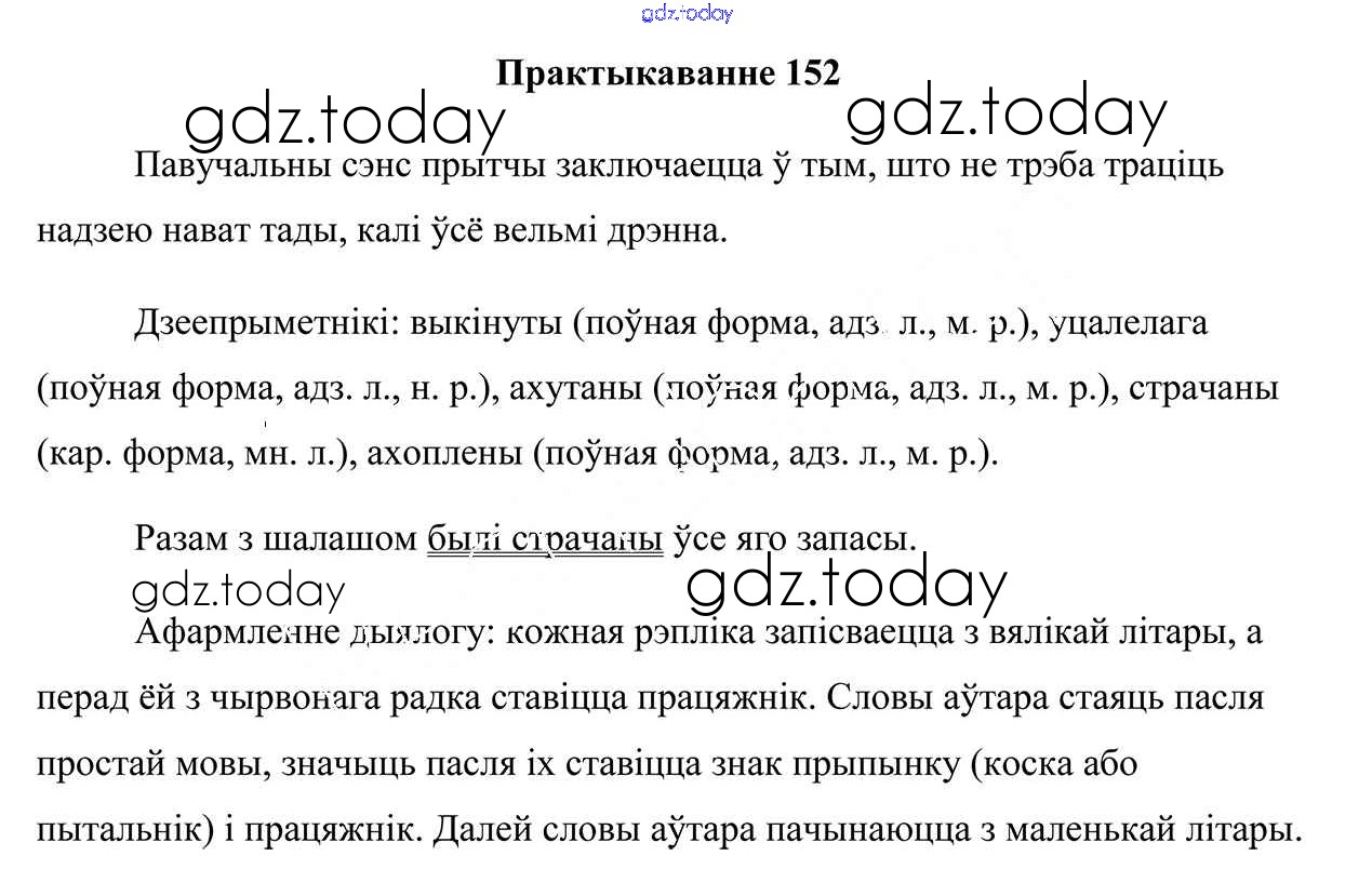 На страницах сайта gdz.today вы найдете учебный и вспомогательный материал, направленный на улучшения знаний школьной программы. ГДЗ - онлайн мир знаний Практыкаванні 152 Учебнику по Белорусскому языку для 7 класса Валочка, Язерская Национальный институт образования 2020