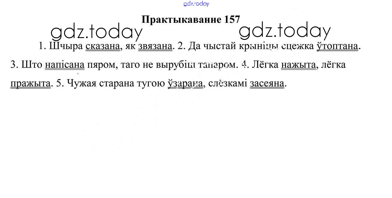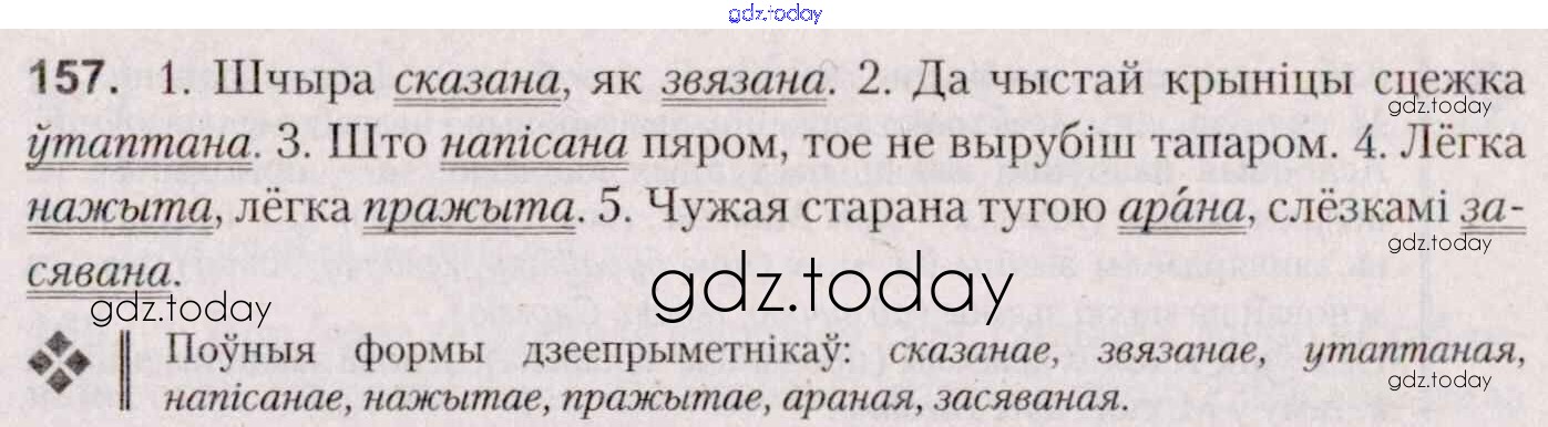 На страницах сайта gdz.today вы найдете учебный и вспомогательный материал, направленный на улучшения знаний школьной программы. ГДЗ - онлайн мир знаний Практыкаванні 157 Учебнику по Белорусскому языку для 7 класса Валочка, Язерская Национальный институт образования 2020