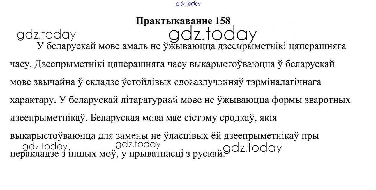 На страницах сайта gdz.today вы найдете учебный и вспомогательный материал, направленный на улучшения знаний школьной программы. ГДЗ - онлайн мир знаний Практыкаванні 158 Учебнику по Белорусскому языку для 7 класса Валочка, Язерская Национальный институт образования 2020
