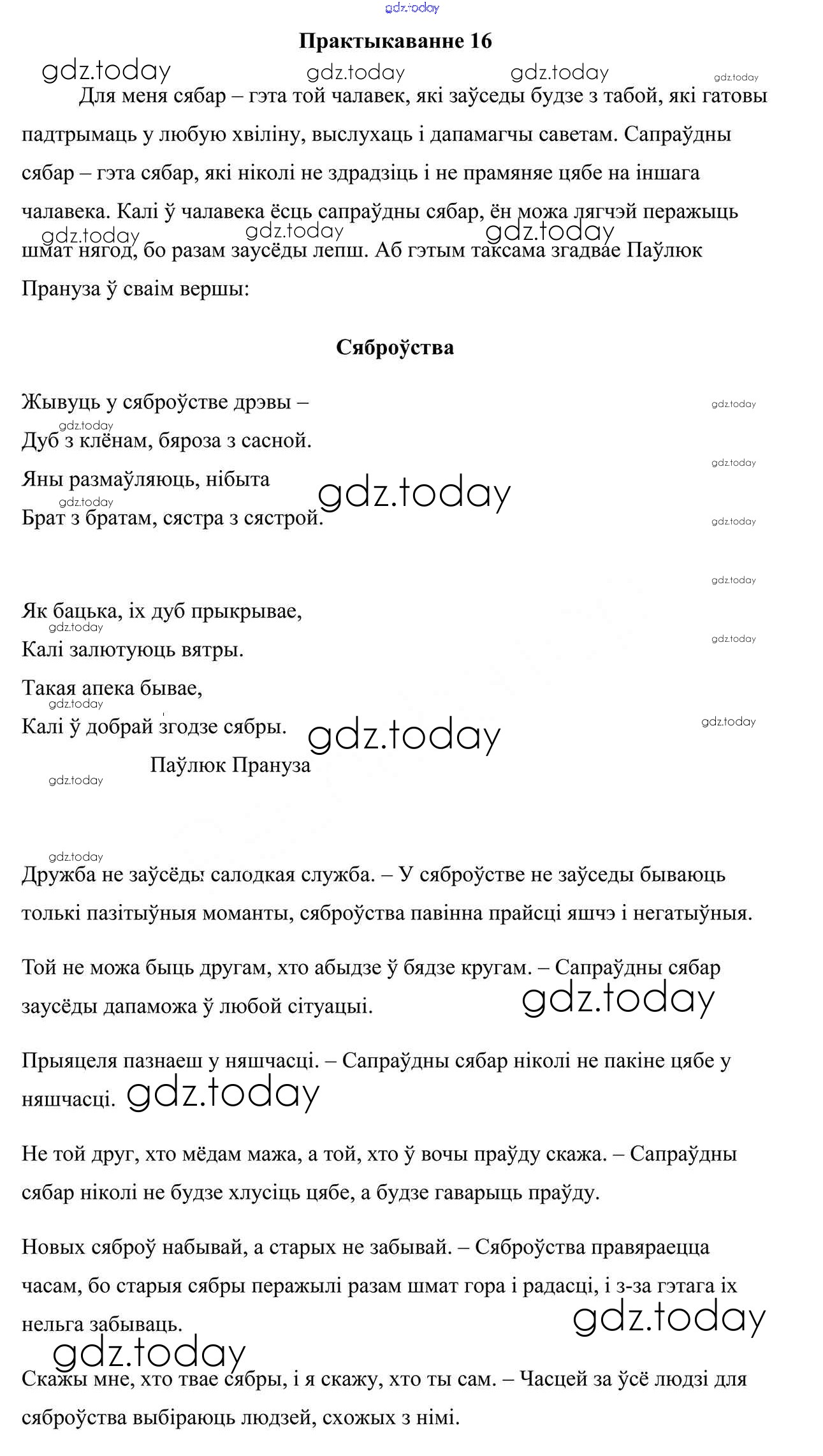 На страницах сайта gdz.today вы найдете учебный и вспомогательный материал, направленный на улучшения знаний школьной программы. ГДЗ - онлайн мир знаний Практыкаванні 16 Учебнику по Белорусскому языку для 7 класса Валочка, Язерская Национальный институт образования 2020
