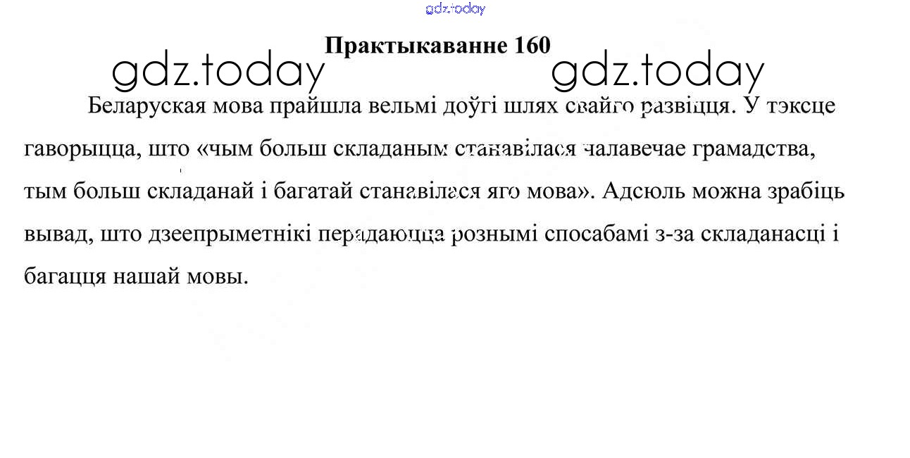 На страницах сайта gdz.today вы найдете учебный и вспомогательный материал, направленный на улучшения знаний школьной программы. ГДЗ - онлайн мир знаний Практыкаванні 160 Учебнику по Белорусскому языку для 7 класса Валочка, Язерская Национальный институт образования 2020