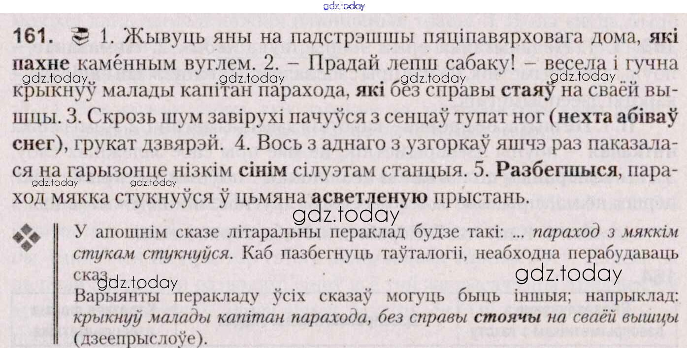 На страницах сайта gdz.today вы найдете учебный и вспомогательный материал, направленный на улучшения знаний школьной программы. ГДЗ - онлайн мир знаний Практыкаванні 161 Учебнику по Белорусскому языку для 7 класса Валочка, Язерская Национальный институт образования 2020
