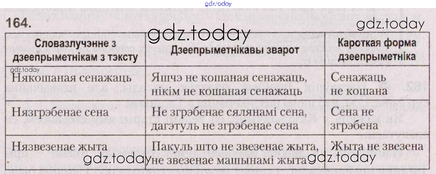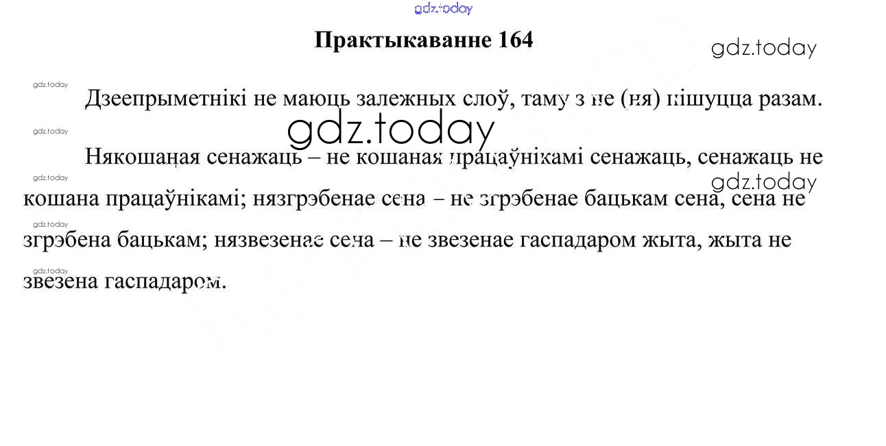 На страницах сайта gdz.today вы найдете учебный и вспомогательный материал, направленный на улучшения знаний школьной программы. ГДЗ - онлайн мир знаний Практыкаванні 164 Учебнику по Белорусскому языку для 7 класса Валочка, Язерская Национальный институт образования 2020