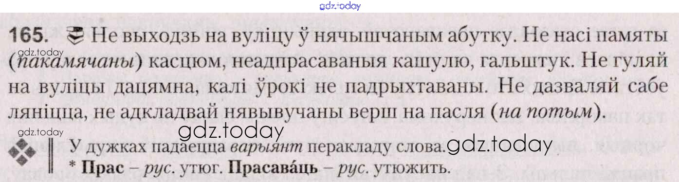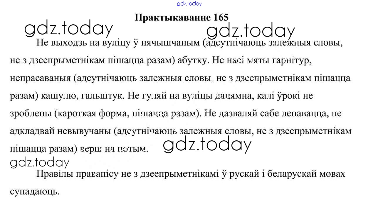 На страницах сайта gdz.today вы найдете учебный и вспомогательный материал, направленный на улучшения знаний школьной программы. ГДЗ - онлайн мир знаний Практыкаванні 165 Учебнику по Белорусскому языку для 7 класса Валочка, Язерская Национальный институт образования 2020
