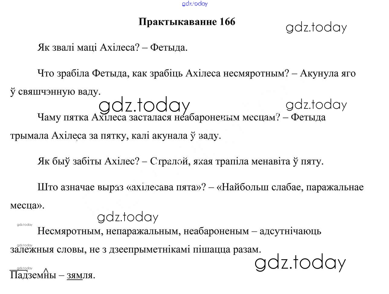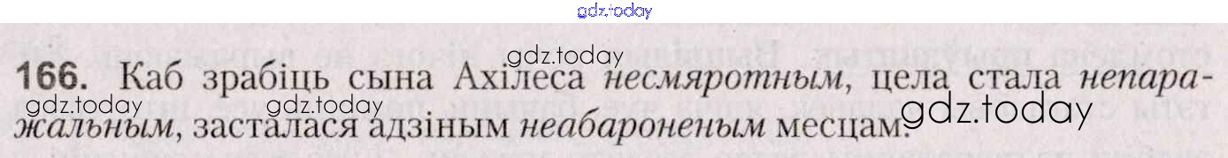 На страницах сайта gdz.today вы найдете учебный и вспомогательный материал, направленный на улучшения знаний школьной программы. ГДЗ - онлайн мир знаний Практыкаванні 166 Учебнику по Белорусскому языку для 7 класса Валочка, Язерская Национальный институт образования 2020