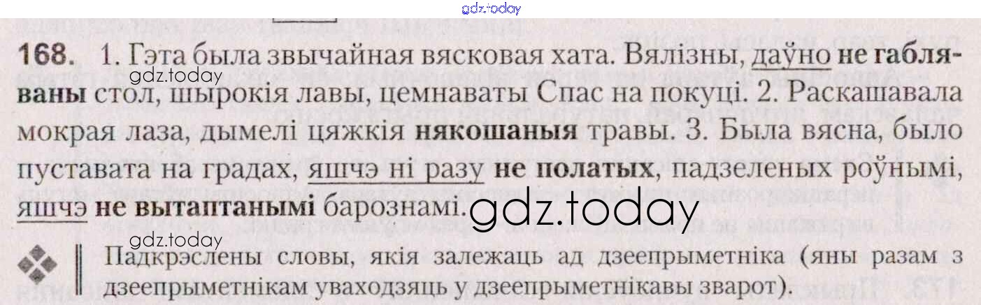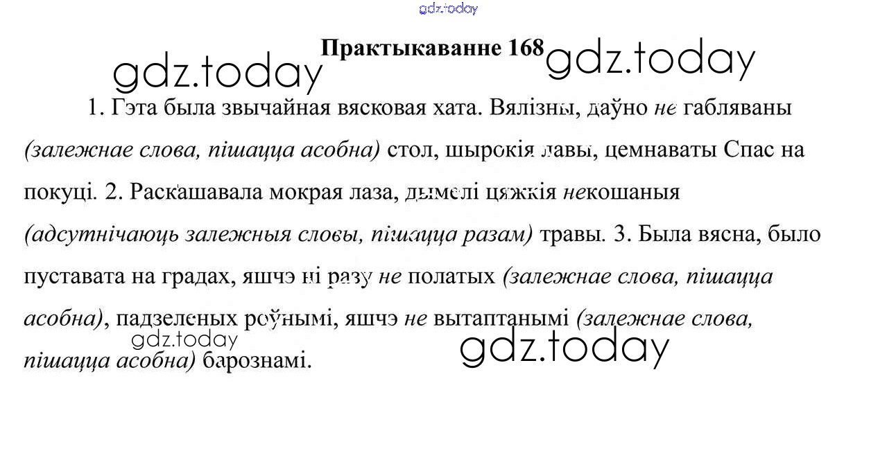 На страницах сайта gdz.today вы найдете учебный и вспомогательный материал, направленный на улучшения знаний школьной программы. ГДЗ - онлайн мир знаний Практыкаванні 168 Учебнику по Белорусскому языку для 7 класса Валочка, Язерская Национальный институт образования 2020