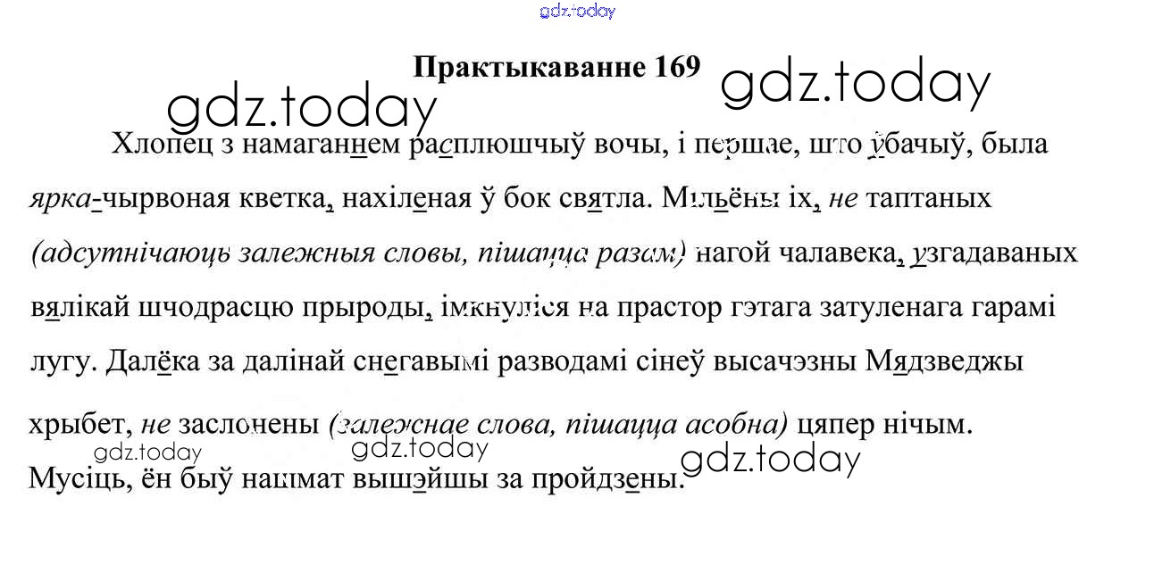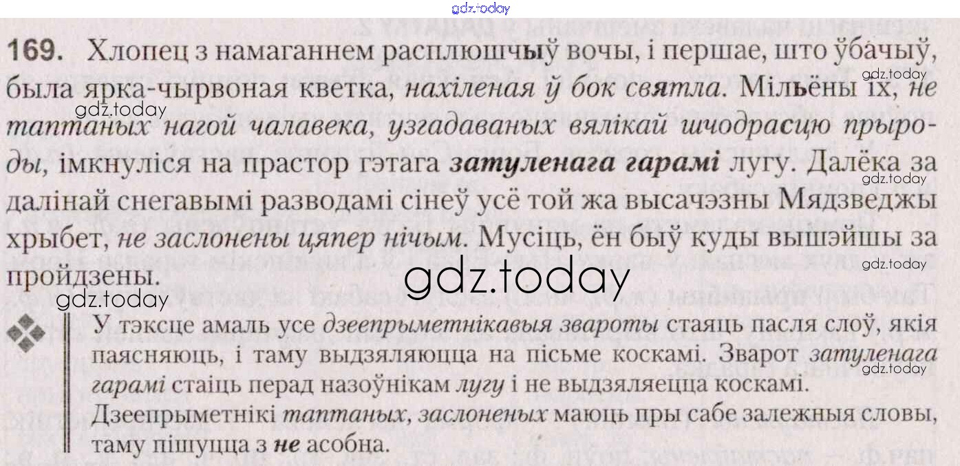 На страницах сайта gdz.today вы найдете учебный и вспомогательный материал, направленный на улучшения знаний школьной программы. ГДЗ - онлайн мир знаний Практыкаванні 169 Учебнику по Белорусскому языку для 7 класса Валочка, Язерская Национальный институт образования 2020
