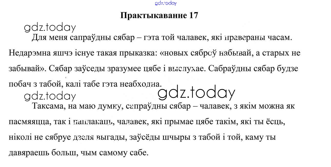 На страницах сайта gdz.today вы найдете учебный и вспомогательный материал, направленный на улучшения знаний школьной программы. ГДЗ - онлайн мир знаний Практыкаванні 17 Учебнику по Белорусскому языку для 7 класса Валочка, Язерская Национальный институт образования 2020