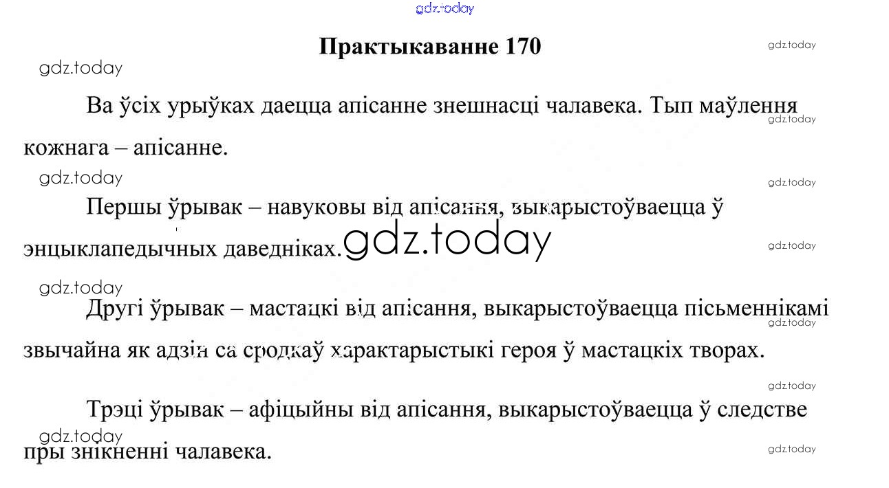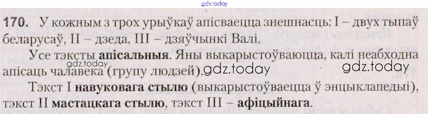 На страницах сайта gdz.today вы найдете учебный и вспомогательный материал, направленный на улучшения знаний школьной программы. ГДЗ - онлайн мир знаний Практыкаванні 170 Учебнику по Белорусскому языку для 7 класса Валочка, Язерская Национальный институт образования 2020