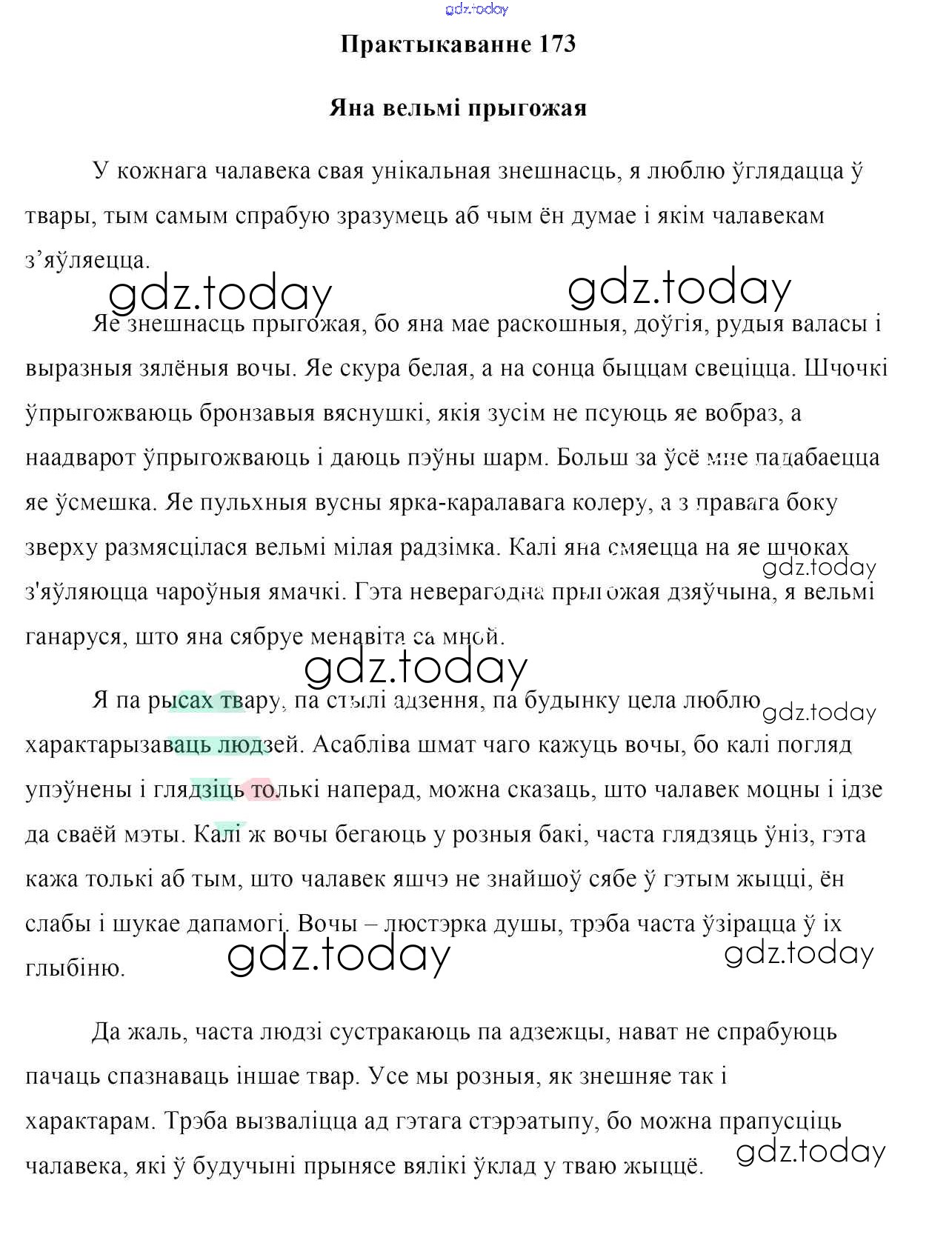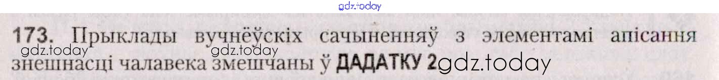 На страницах сайта gdz.today вы найдете учебный и вспомогательный материал, направленный на улучшения знаний школьной программы. ГДЗ - онлайн мир знаний Практыкаванні 173 Учебнику по Белорусскому языку для 7 класса Валочка, Язерская Национальный институт образования 2020