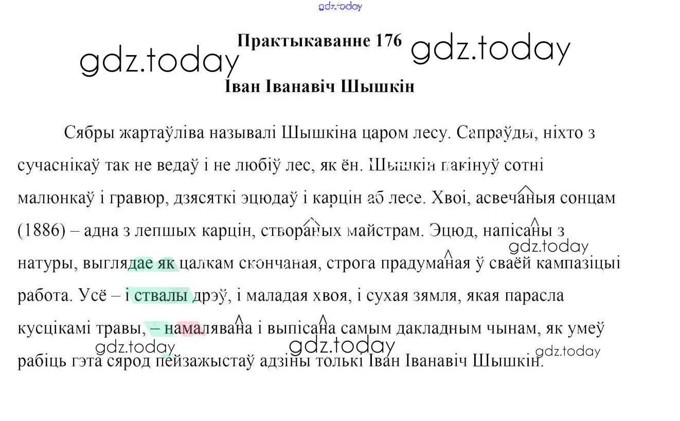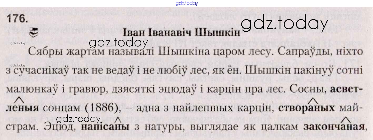 На страницах сайта gdz.today вы найдете учебный и вспомогательный материал, направленный на улучшения знаний школьной программы. ГДЗ - онлайн мир знаний Практыкаванні 176 Учебнику по Белорусскому языку для 7 класса Валочка, Язерская Национальный институт образования 2020