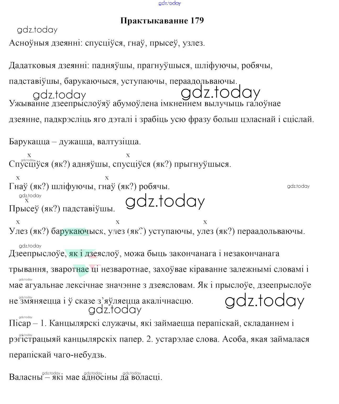 На страницах сайта gdz.today вы найдете учебный и вспомогательный материал, направленный на улучшения знаний школьной программы. ГДЗ - онлайн мир знаний Практыкаванні 179 Учебнику по Белорусскому языку для 7 класса Валочка, Язерская Национальный институт образования 2020