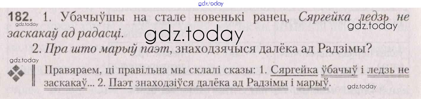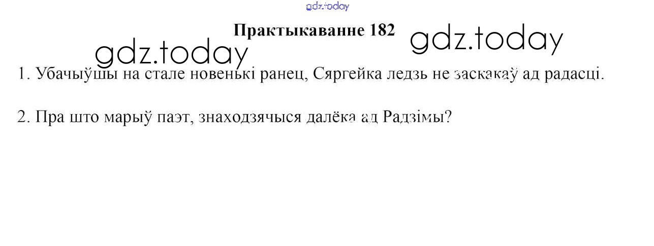На страницах сайта gdz.today вы найдете учебный и вспомогательный материал, направленный на улучшения знаний школьной программы. ГДЗ - онлайн мир знаний Практыкаванні 182 Учебнику по Белорусскому языку для 7 класса Валочка, Язерская Национальный институт образования 2020