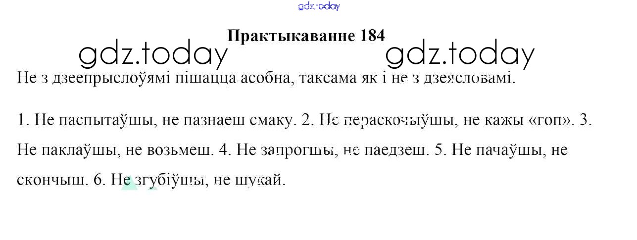 На страницах сайта gdz.today вы найдете учебный и вспомогательный материал, направленный на улучшения знаний школьной программы. ГДЗ - онлайн мир знаний Практыкаванні 184 Учебнику по Белорусскому языку для 7 класса Валочка, Язерская Национальный институт образования 2020