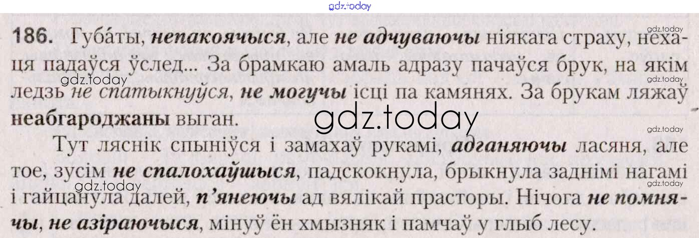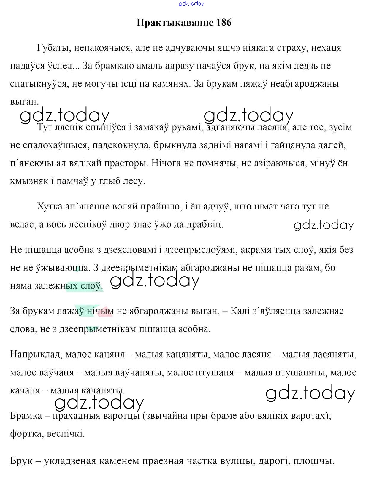 На страницах сайта gdz.today вы найдете учебный и вспомогательный материал, направленный на улучшения знаний школьной программы. ГДЗ - онлайн мир знаний Практыкаванні 186 Учебнику по Белорусскому языку для 7 класса Валочка, Язерская Национальный институт образования 2020