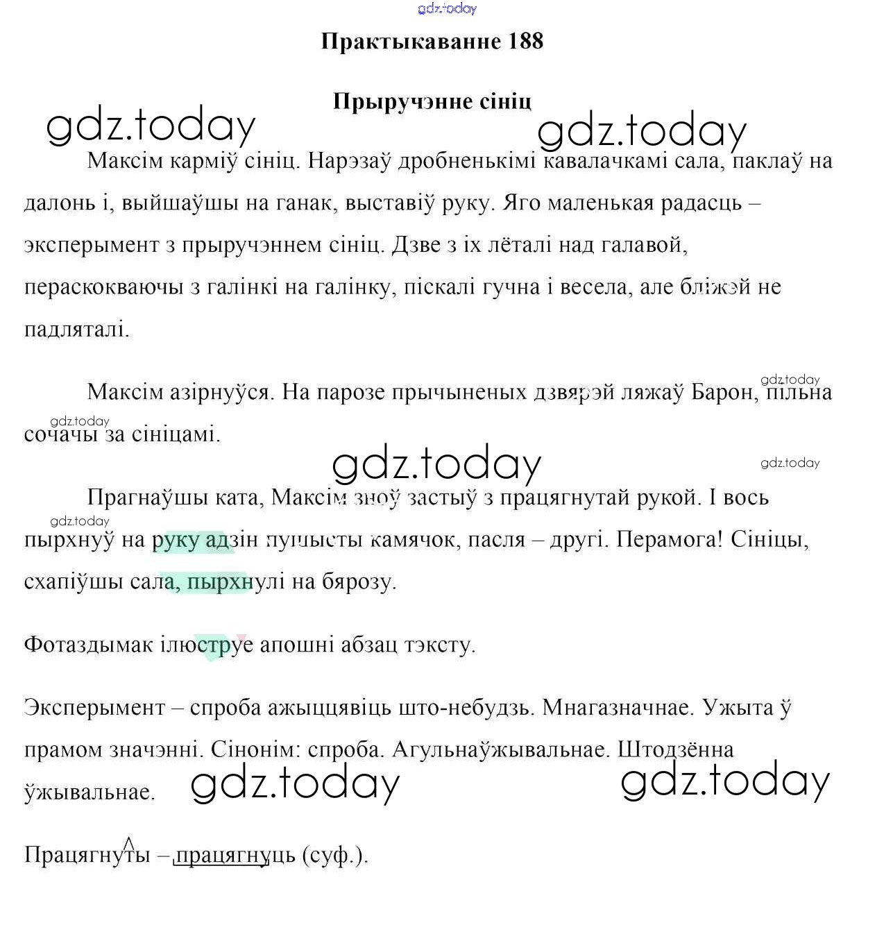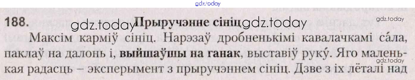 На страницах сайта gdz.today вы найдете учебный и вспомогательный материал, направленный на улучшения знаний школьной программы. ГДЗ - онлайн мир знаний Практыкаванні 188 Учебнику по Белорусскому языку для 7 класса Валочка, Язерская Национальный институт образования 2020