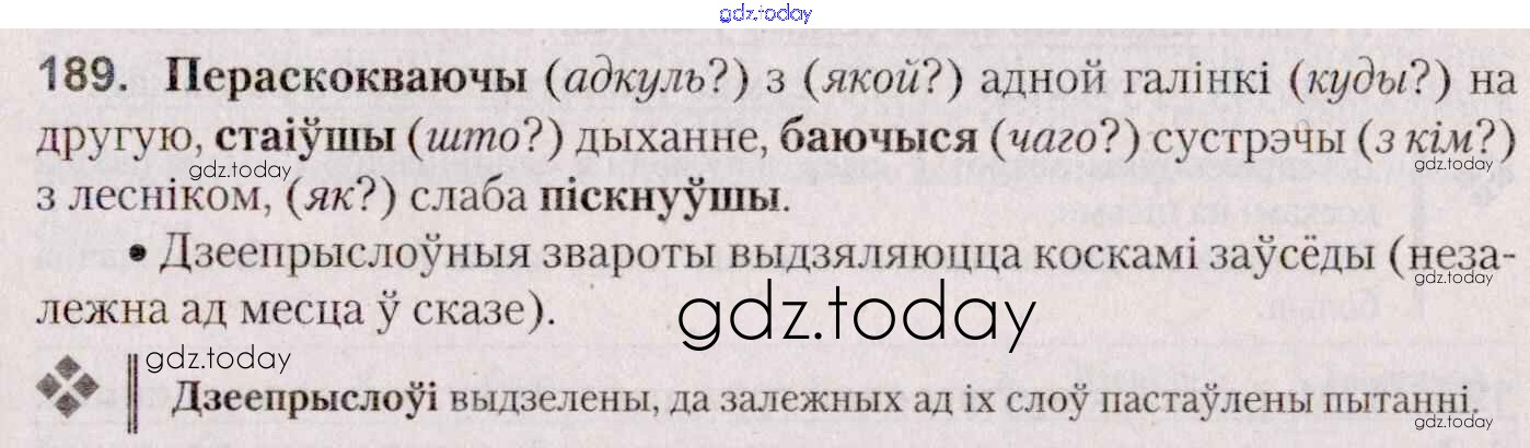 На страницах сайта gdz.today вы найдете учебный и вспомогательный материал, направленный на улучшения знаний школьной программы. ГДЗ - онлайн мир знаний Практыкаванні 189 Учебнику по Белорусскому языку для 7 класса Валочка, Язерская Национальный институт образования 2020