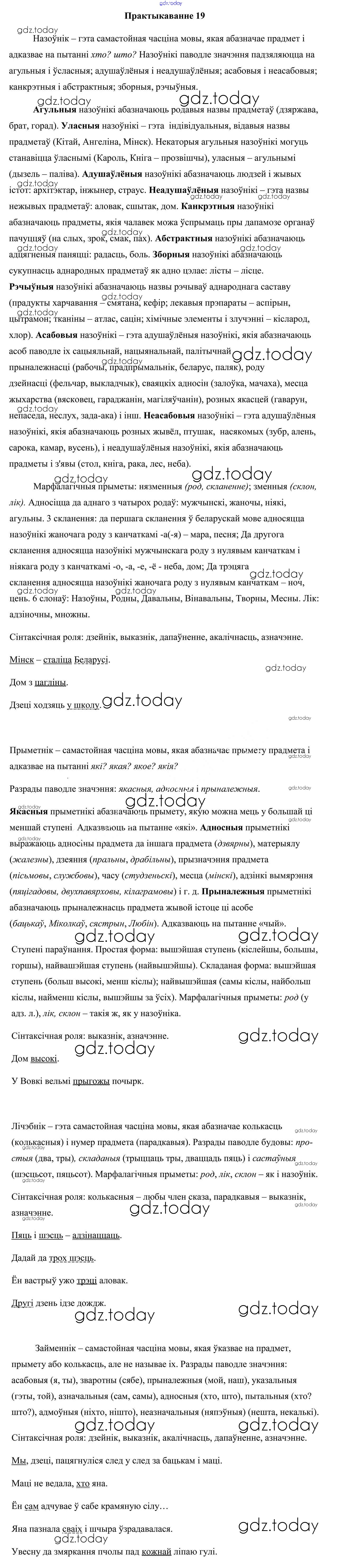 На страницах сайта gdz.today вы найдете учебный и вспомогательный материал, направленный на улучшения знаний школьной программы. ГДЗ - онлайн мир знаний Практыкаванні 19 Учебнику по Белорусскому языку для 7 класса Валочка, Язерская Национальный институт образования 2020