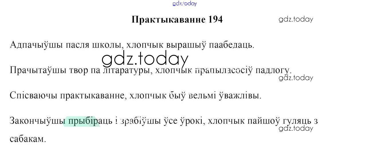 На страницах сайта gdz.today вы найдете учебный и вспомогательный материал, направленный на улучшения знаний школьной программы. ГДЗ - онлайн мир знаний Практыкаванні 194 Учебнику по Белорусскому языку для 7 класса Валочка, Язерская Национальный институт образования 2020