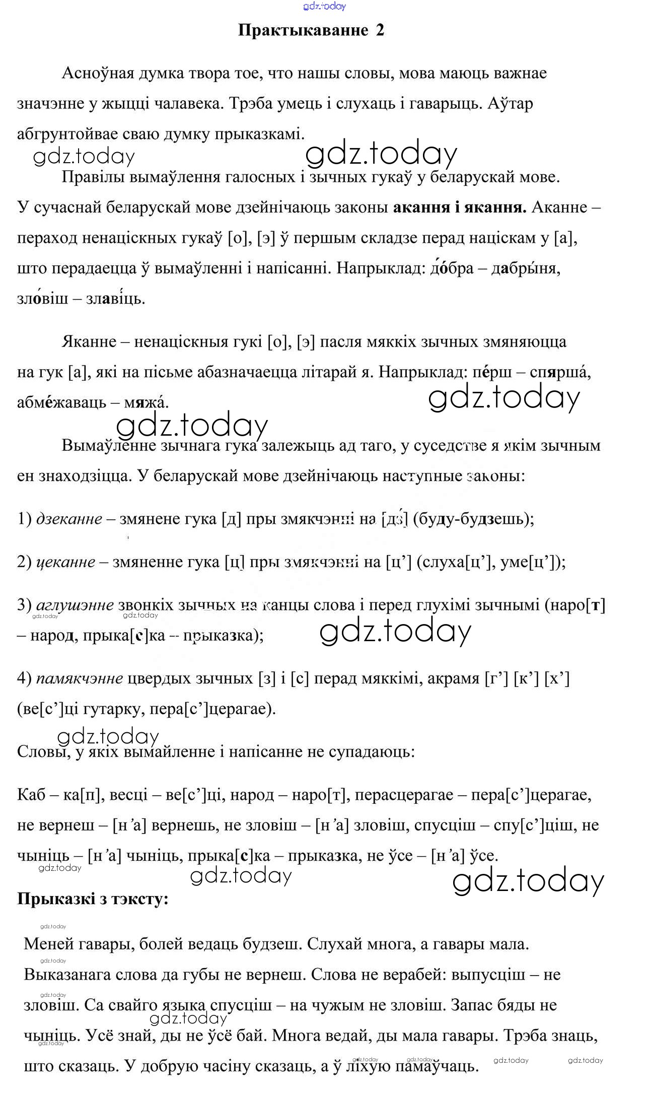 На страницах сайта gdz.today вы найдете учебный и вспомогательный материал, направленный на улучшения знаний школьной программы. ГДЗ - онлайн мир знаний Практыкаванні 2 Учебнику по Белорусскому языку для 7 класса Валочка, Язерская Национальный институт образования 2020