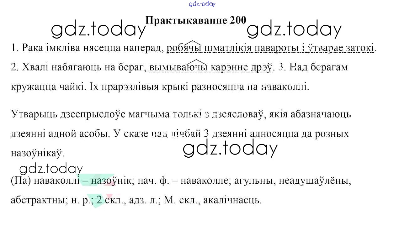 На страницах сайта gdz.today вы найдете учебный и вспомогательный материал, направленный на улучшения знаний школьной программы. ГДЗ - онлайн мир знаний Практыкаванні 200 Учебнику по Белорусскому языку для 7 класса Валочка, Язерская Национальный институт образования 2020