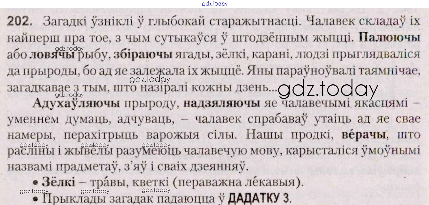 На страницах сайта gdz.today вы найдете учебный и вспомогательный материал, направленный на улучшения знаний школьной программы. ГДЗ - онлайн мир знаний Практыкаванні 202 Учебнику по Белорусскому языку для 7 класса Валочка, Язерская Национальный институт образования 2020