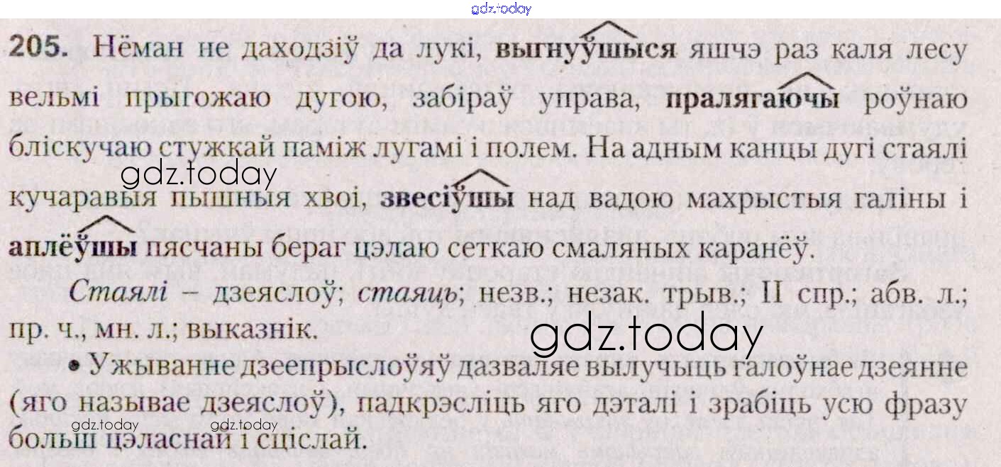 На страницах сайта gdz.today вы найдете учебный и вспомогательный материал, направленный на улучшения знаний школьной программы. ГДЗ - онлайн мир знаний Практыкаванні 205 Учебнику по Белорусскому языку для 7 класса Валочка, Язерская Национальный институт образования 2020