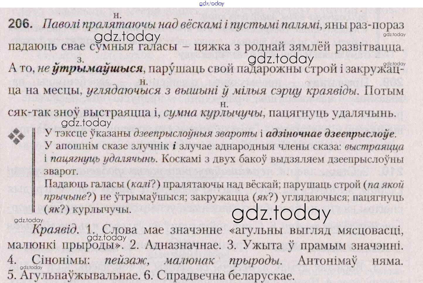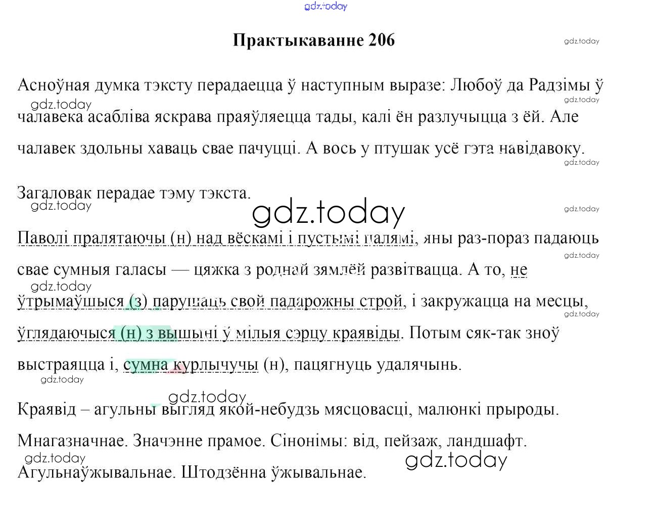 На страницах сайта gdz.today вы найдете учебный и вспомогательный материал, направленный на улучшения знаний школьной программы. ГДЗ - онлайн мир знаний Практыкаванні 206 Учебнику по Белорусскому языку для 7 класса Валочка, Язерская Национальный институт образования 2020