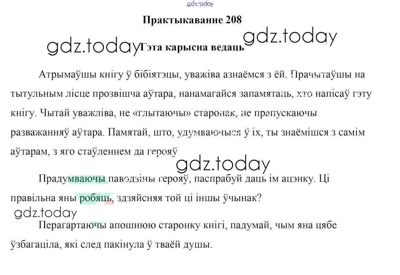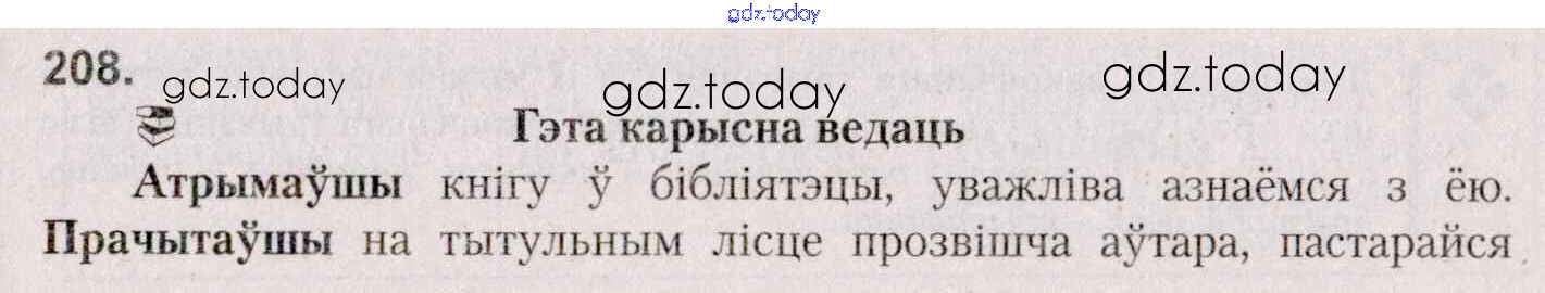 На страницах сайта gdz.today вы найдете учебный и вспомогательный материал, направленный на улучшения знаний школьной программы. ГДЗ - онлайн мир знаний Практыкаванні 208 Учебнику по Белорусскому языку для 7 класса Валочка, Язерская Национальный институт образования 2020