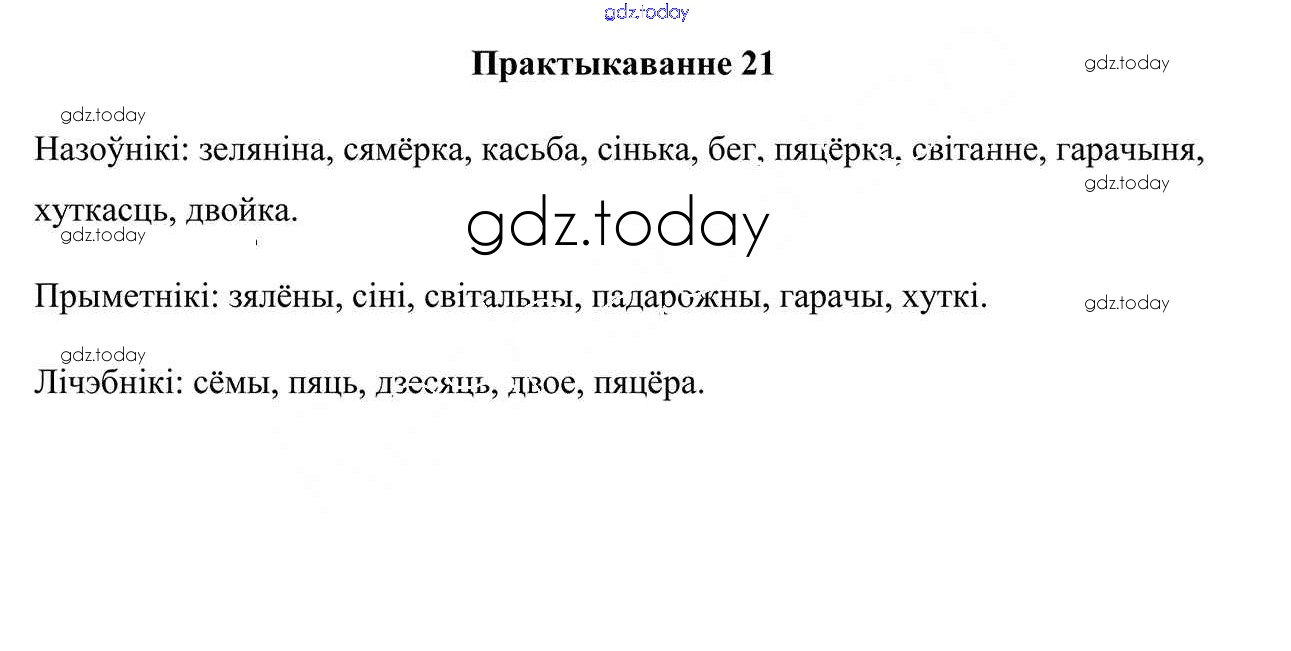 На страницах сайта gdz.today вы найдете учебный и вспомогательный материал, направленный на улучшения знаний школьной программы. ГДЗ - онлайн мир знаний Практыкаванні 21 Учебнику по Белорусскому языку для 7 класса Валочка, Язерская Национальный институт образования 2020